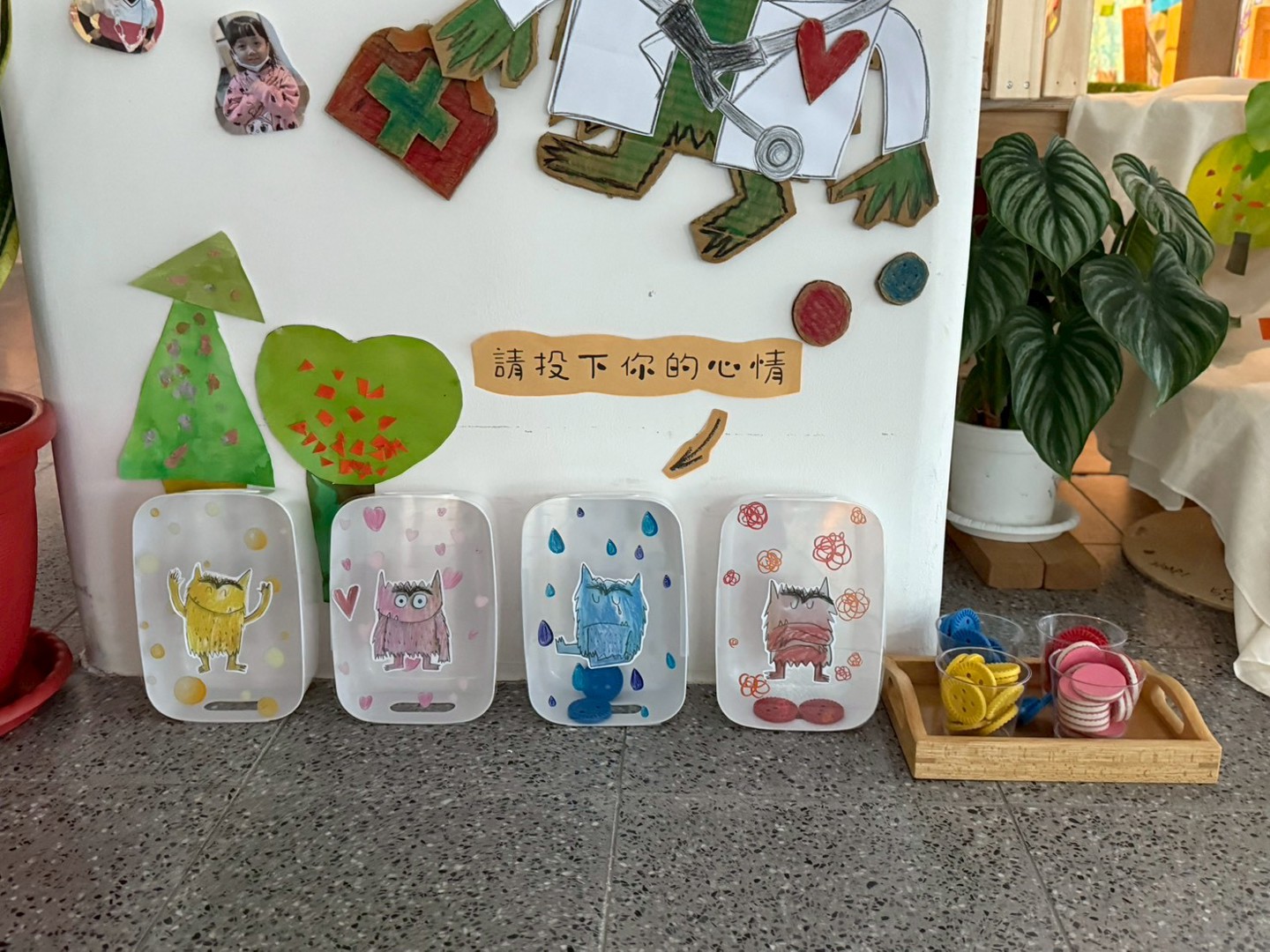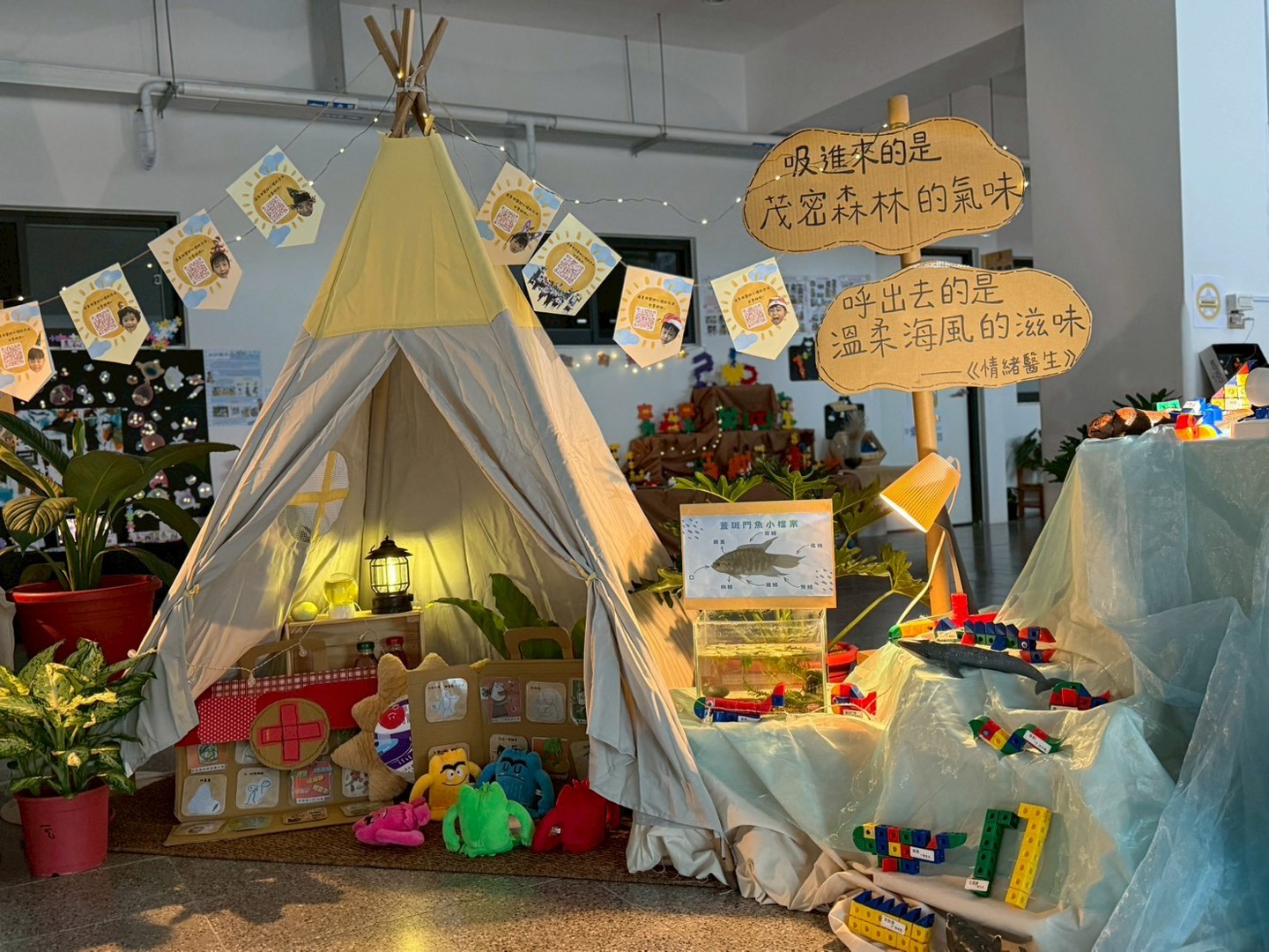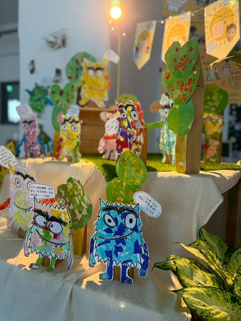 在這個小小空間裡,孩子們不只是創作作品,更是在練習傾聽自己、表達感受、理解他人。每一棵樹、每一隻魚,都是他們情緒成長的足跡,也是老師陪伴與引導的溫柔痕跡。這些美麗的作品,靜靜述說著孩子們學習認識情緒、調節心情、與世界好好相處的一段旅程。太陽班的心情小天地,不只是教室的一角,而是一個讓心被看見、被接住、慢慢長大的地方。