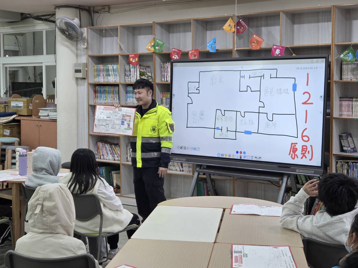 孩子們最愛的消防護照闖關活動終於登場啦!本校四年級班級數眾多,本次消防護照分成兩個梯次,分別用1/12、1/13辦理,今天是第一梯次的闖關活動。