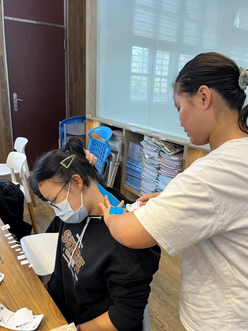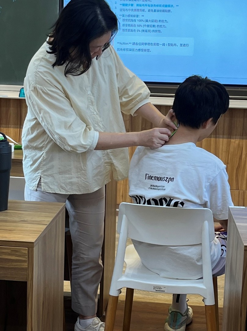 近期課程以「運動傷害處理」為主軸,仁德醫專教師透過實際示範與分組操作,引導學生認識運動中常見的拉傷、扭傷與肌肉不適,並學習正確的貼紮技巧。課程中特別介紹兩種常見的運動傷害貼布:肌內效貼布(Kinesiology Tape)與運動膠帶(Athletic Tape,又稱白貼),協助學生建立基礎而正確的醫護觀念。 教師說明,肌內效貼布本身不含藥性,主要透過貼布的彈性與張力,達到支撐肌肉、促進循環與消腫的效果,適合用於慢性不適或運動後保養,貼附後可維持約二至三天;而運動膠帶則不具彈性,主要功能在於限制關節活動、提供固定與支撐,多應用於急性期傷害或需要穩定關節的情況。透過比較兩者差異,學生更能理解貼紮並非「貼了就好」,而是需依傷害狀況正確選用。 課堂中,學生實際為同學進行貼紮操作,從觀察肌肉走向、判斷貼布長度到調整張力,過程專注投入,也展現高度學習動機。透過這樣貼近生活的實作課程,學生不僅學到實用技能,也對醫護與健康照護領域產生更具體的認識,為未來升學與職涯探索奠定良好基礎。