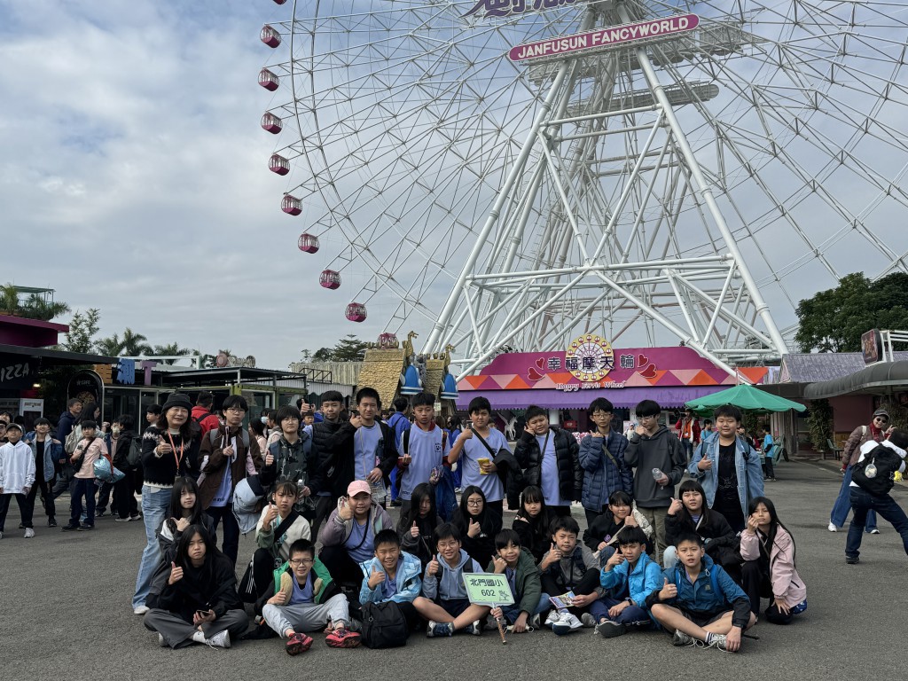 約9:00,全體師生步行前往劍湖山遊樂世界,園區內各式遊樂設施、主題場景應接不暇,孩子們在歡笑與尖叫聲中盡情玩樂。無論是刺激的雲霄飛車還是趣味遊戲區,大家都留下了滿滿的回憶,也在同儕陪伴中增添友情與歡樂。