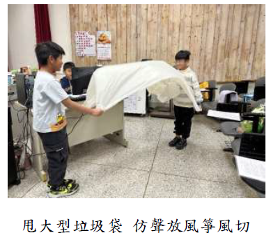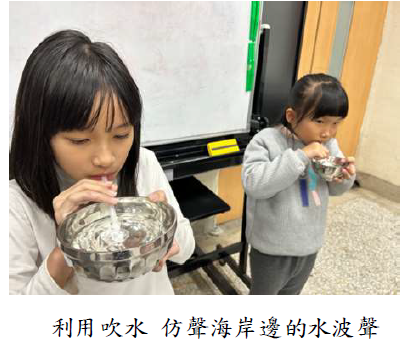 孩子們化身「音景製造所」成員,利用生活素材模擬各種海港聲音: