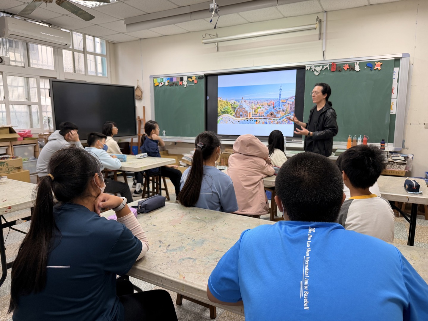 建築師從巴塞隆納充滿生命力的城市質感照片引發學生的好奇心,接著帶領學生跳脫慣用的視覺模式,重新以觸覺感受校園物件,並拓印、採集意想不到的質感,最後以Canva進行質感拼貼創作,讓校園的質感化為一張張創意的作品。