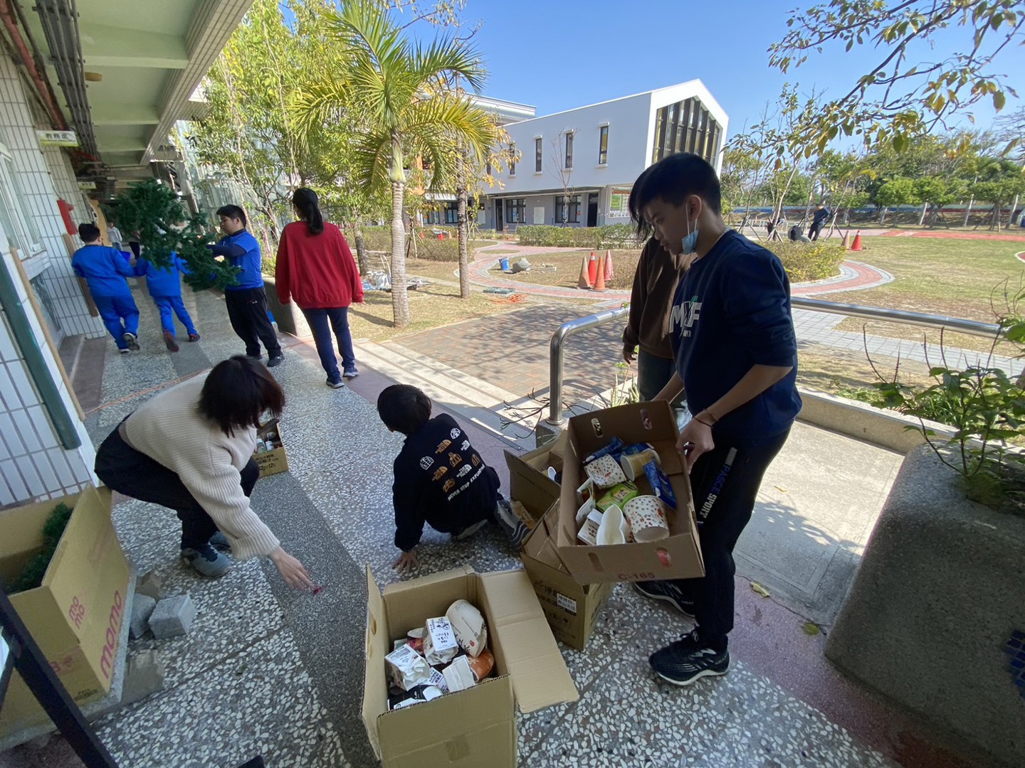 115.01.13 第一學期期末將至,校園內正進行各項用具與環境的整理工作。週二午餐後依舊進行全校性的資源回收工作。在五年集資收小天使播放資源回收的音樂,也迅速至各辦公室及幼兒園等地點收取可回收物品後,即刻至學務處前協助全校班級進行分類回收,待分類整理完成後拿至機車車棚內存放。
