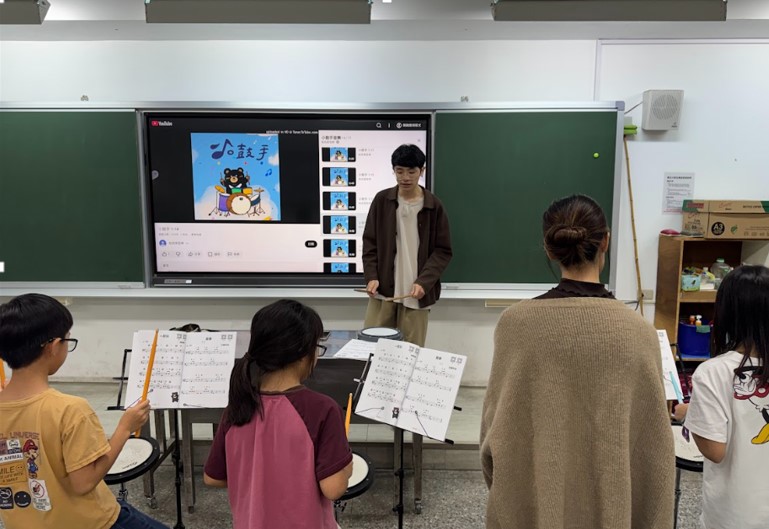 爵士鼓社團的課程設計強調「寓教於樂」。指導老師表示,對於初學的孩子來說,厚重的鼓組並非冷冰冰的樂器,而是最好的大玩具。