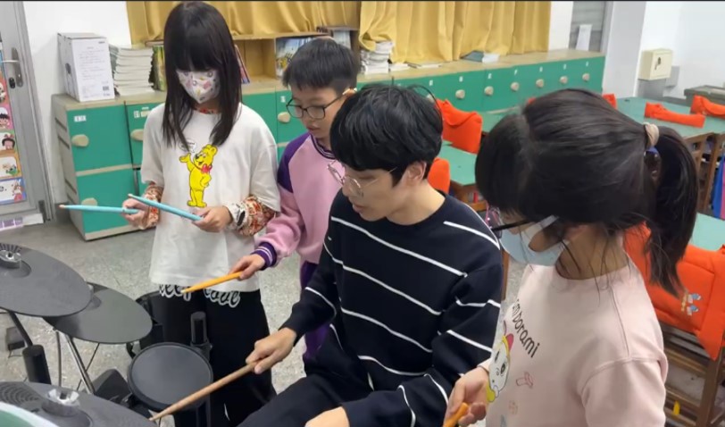 爵士鼓的學習並不簡單,需要手腳高度協調。在練習過程中,孩子們展現了驚人的專注力:隨著節奏感日益增強,原本害羞內向的孩子也逐漸挺起胸膛,眼神中流露出前所未有的自信。