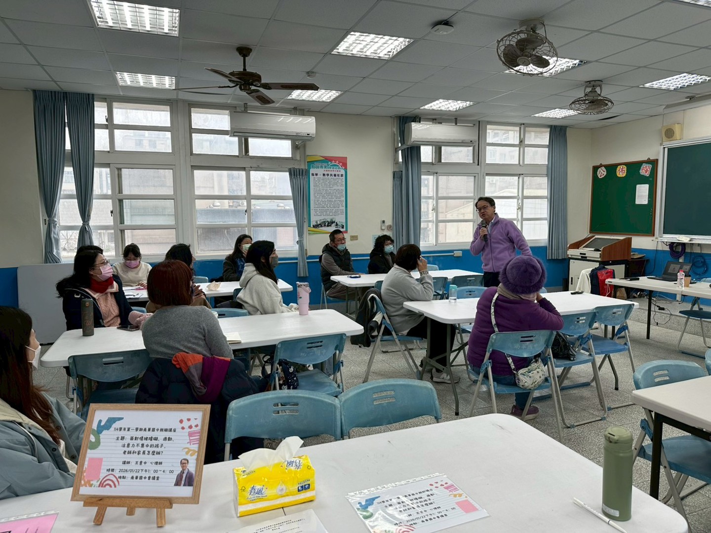 在這場親職講座暨特教研習中,學校邀請最有魅力的王意中心理師分享,現場座無虛席,心理師帶領老師們與家長們重新思考:面對孩子,我們能做的不只是要求改變,我們還能做什麼?