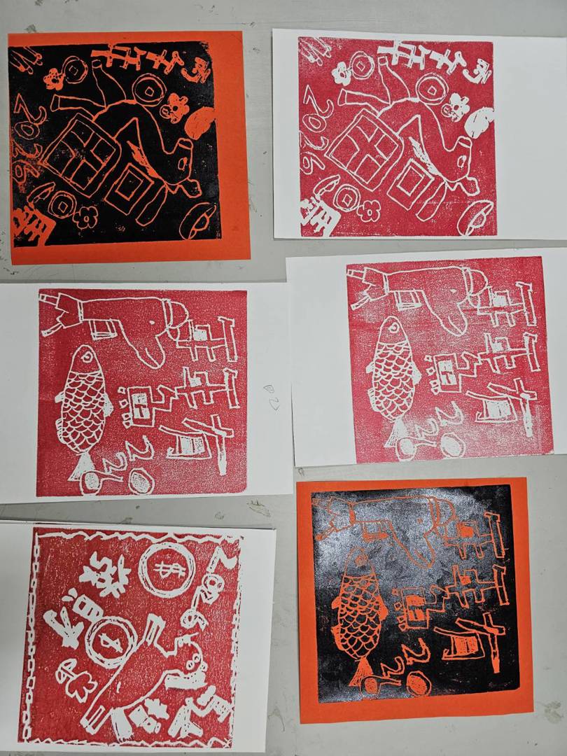 在雙語藝術課中,體驗了刻版印刷的樂趣,一刀一刻都是驚喜,一印一壓都是成就感!