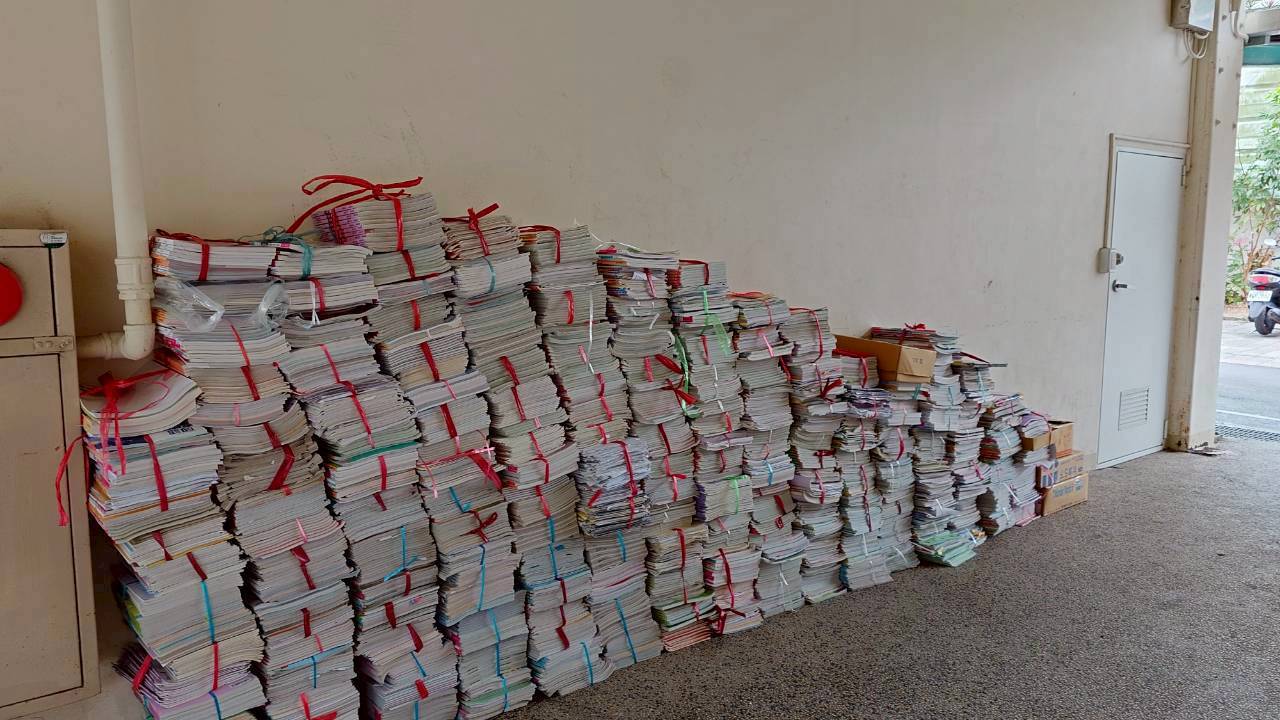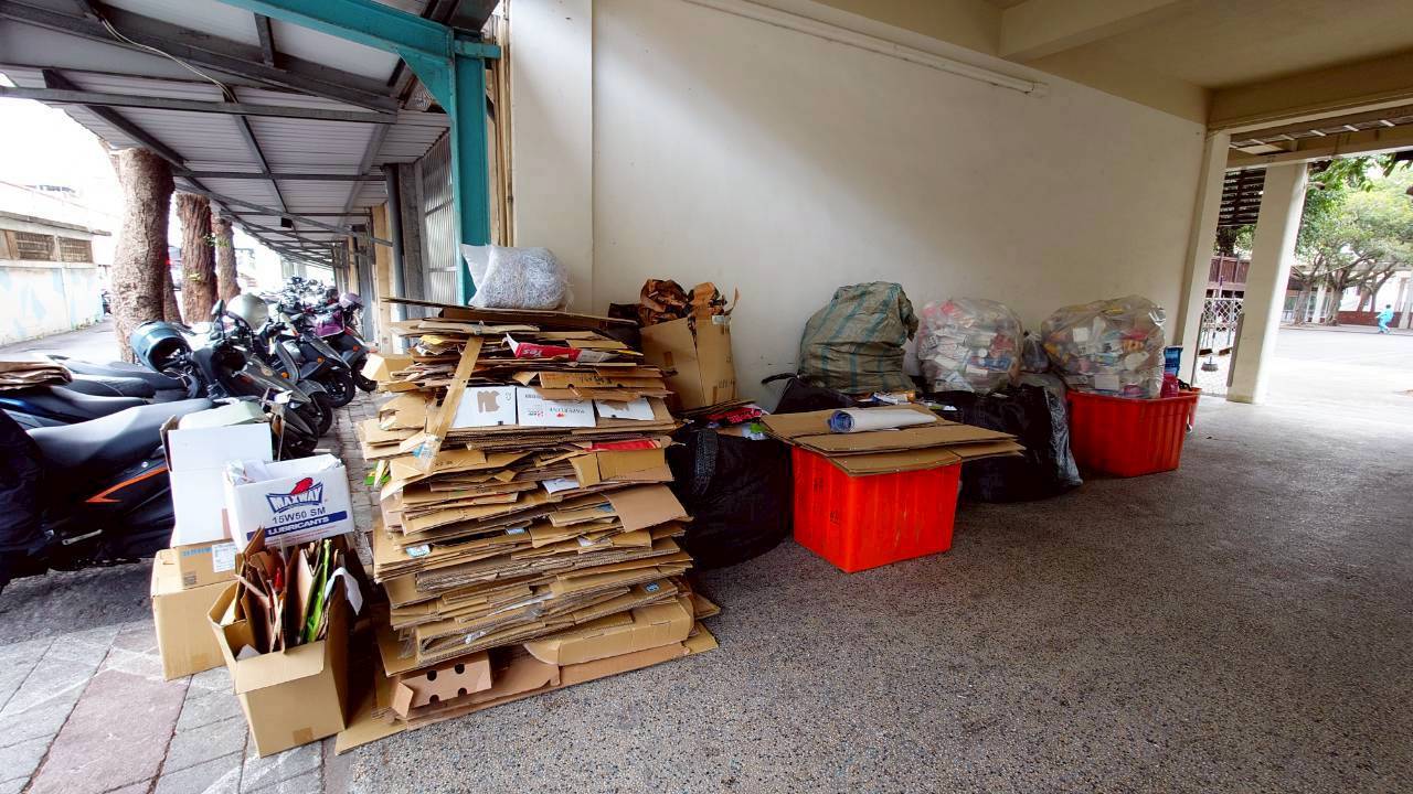 歲末年終,涼風拂面,民富師生為教室環境進行最終的整理。今日上午,各班井然有序的排隊等待回收,只見書籍簿本經師生巧手,以紅繩一疊疊綑綁成串;紙容器、寶特瓶、鐵鋁罐及玻璃瓶等,均已簡易清洗,並透過摺疊、壓扁等方式,減少體積。