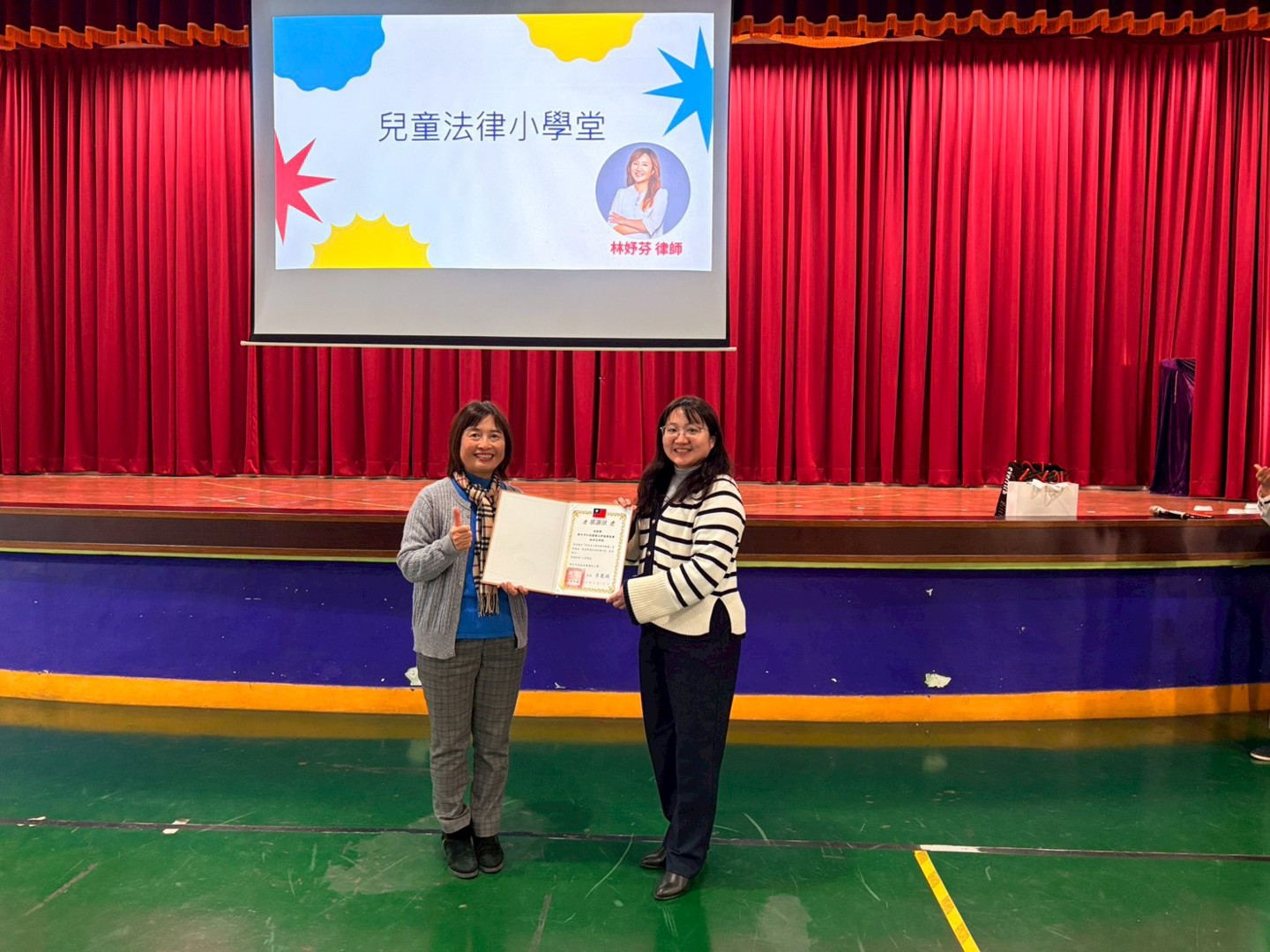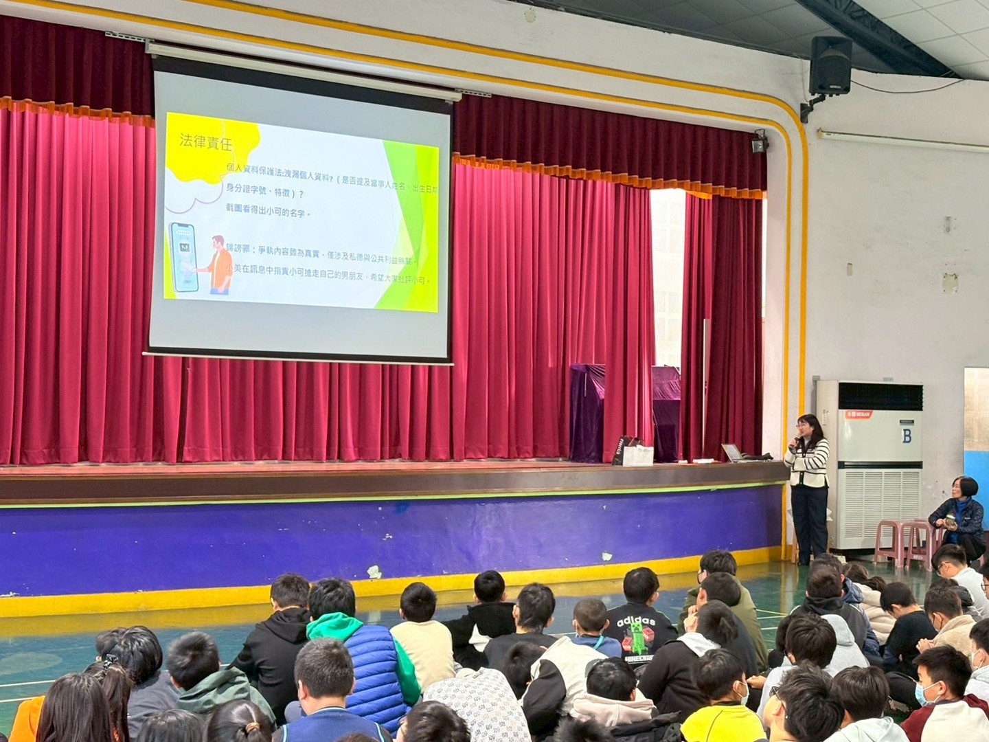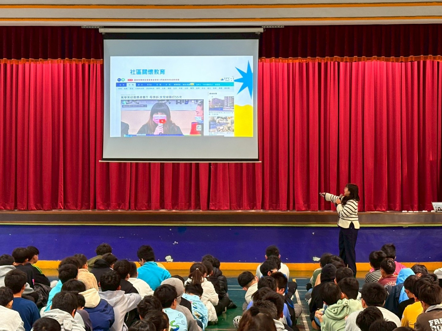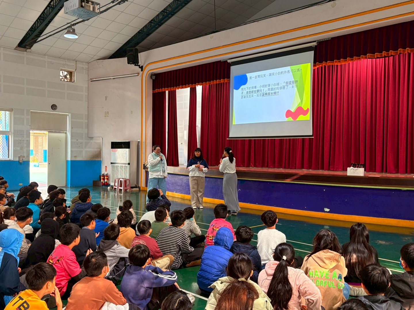 在放假前,學務處安排了一場防制霸凌、性騷擾的法治教育宣導,特別感謝南寮國小好鄰居-彭氏祖祠第17屆董事長彭培桐先生牽線,讓我們結識林妤芬律師及新竹市社區關懷法律服務協會,也非常幸運地在放假前順利約成本次宣導活動。由林律師帶領著協會夥伴一起到南寮國小,為高年級的孩子進行有關言論、網路、同儕互動的法律觀念案例分享。特別的是,律師的案例是由協會夥伴現場演繹的小劇場來呈現哦!非常貼近學生真實互動的劇情,在演繹時都可以聽到大南寮們感同身受的回應呢!