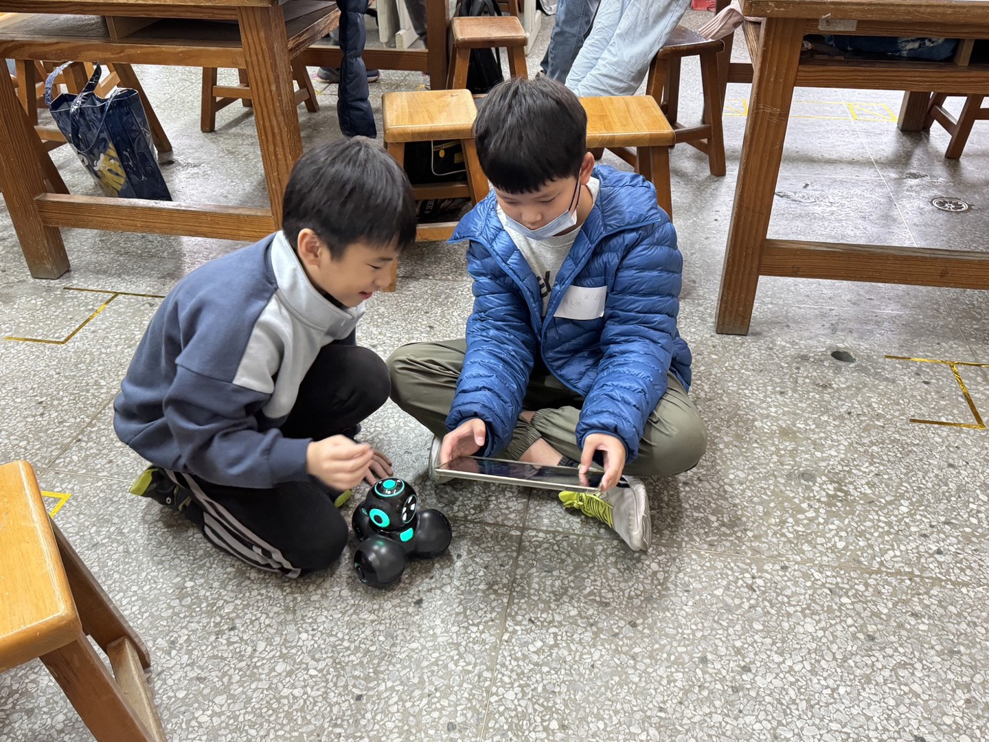 今天是民富國小四、五年級學生科技冬令營的第一天課程,主要目標在於讓學生先熟悉 Wonder Cue 機器人 的操作方式與反應特性。課堂中,學生透過 iPad 進行遙控操作,分別體驗「機器人考駕照」與「相撲機器人競賽」兩項活動。在考駕照關卡中,學生需控制機器人依指示前進、轉彎與停止,理解方向、速度與距離之間的關係;相撲競賽則透過對戰方式,讓學生觀察不同操作策略對結果的影響。