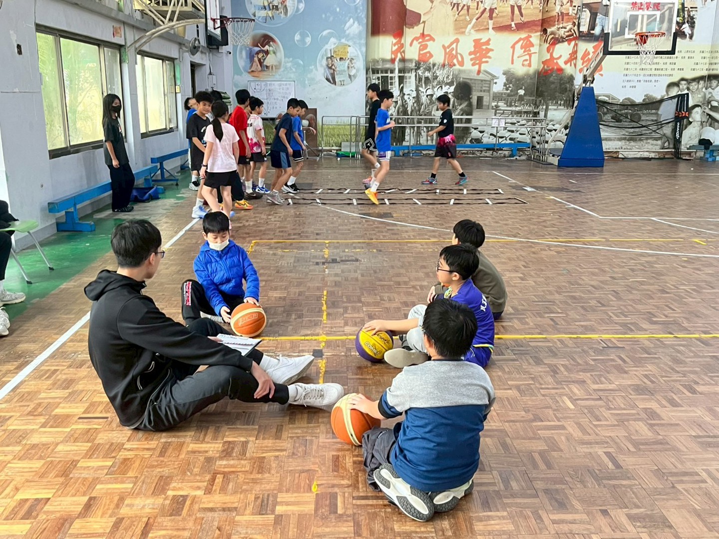 為推行全民運動、全民打籃球、快樂又健康!及培養學生特殊專長,訓練學生敏捷性與專注力,從事正當休閒活動,鍛鍊體能,充實寒假生活。本校特別舉辦籃球寒假育樂營,寒假期間每週星期一至五上午連續兩週,愛打球的孩子一起快樂打球。感謝籃球隊金教練及助理教練指導孩子。民富青出於籃、民富加油!
