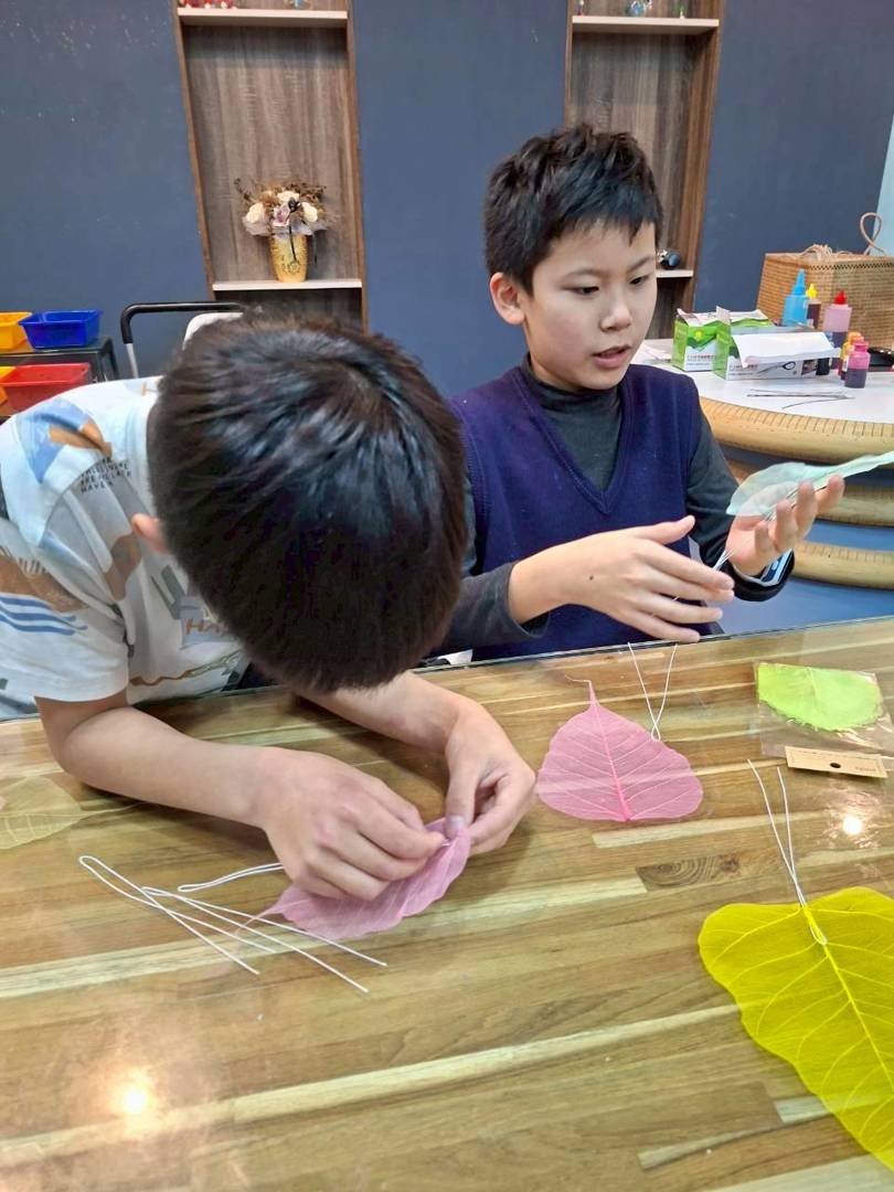 中、高年級的課後班學生們在森林裡的魔法~從一片葉子開始。課程很令人期待,我們要動手做葉脈玫瑰,而過程依序為 :