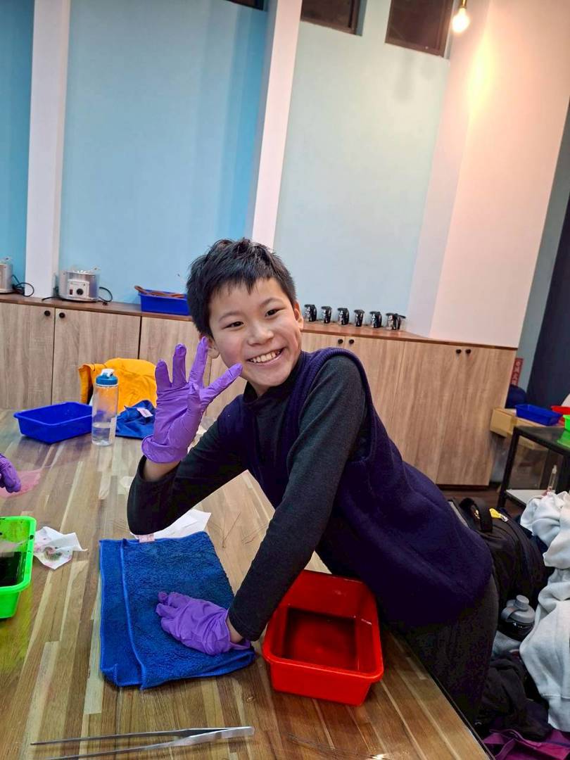 過程中由指導老師讓大家看煮葉子的過程,接著動手染色,緊接著最重要的就是組裝囉!