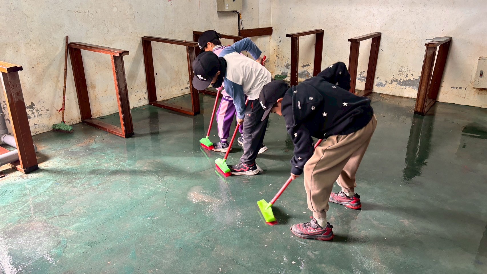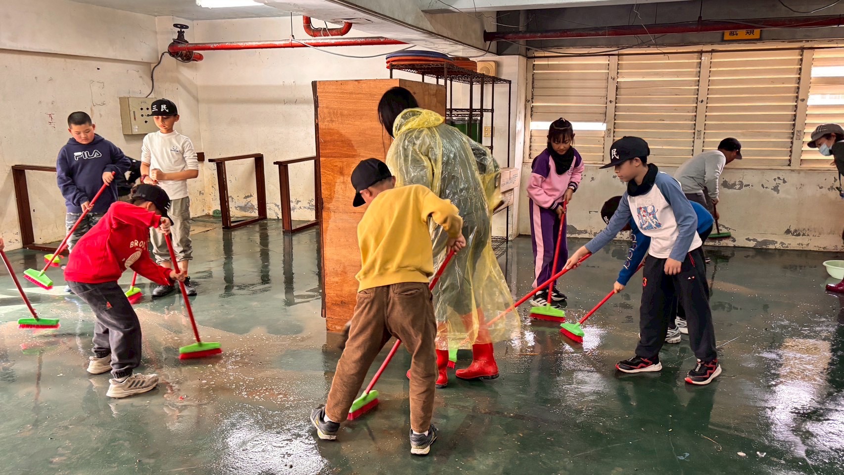 棒球隊的小將們也樂意幫忙回收室,暫時放下球棒,拿起長柄刷,成為最認真的清掃小幫手。讓孩子在實際行動中學會感恩與付出。學校給予他們舞台與養分,而孩子們選擇用雙手回應這份栽培。