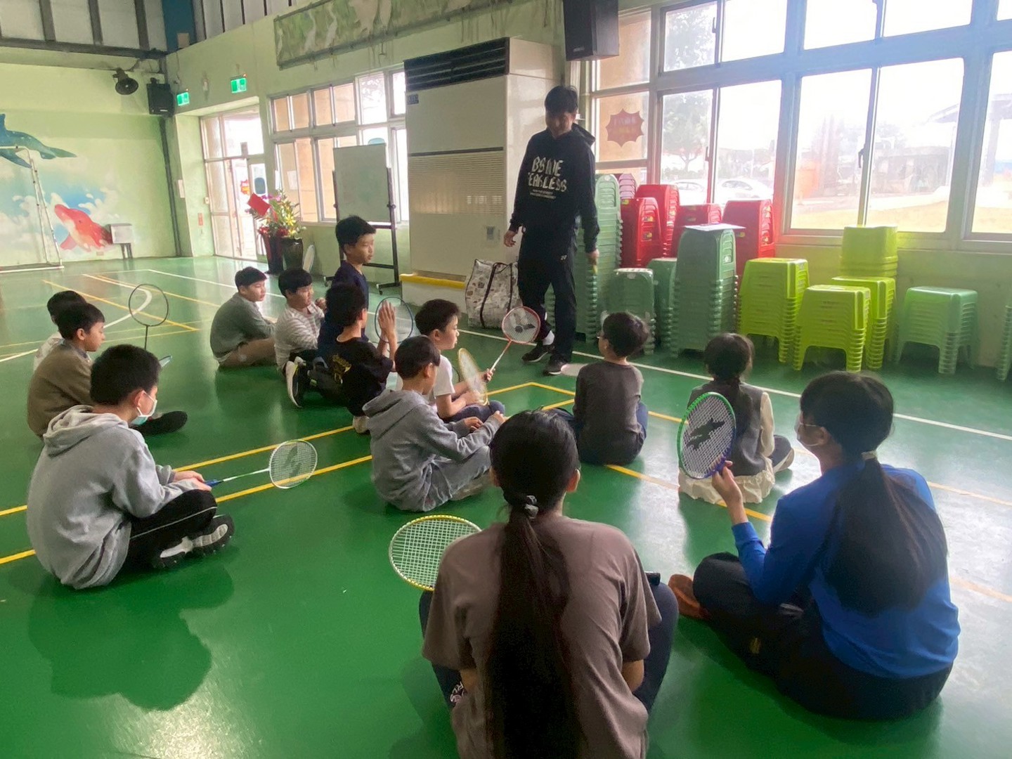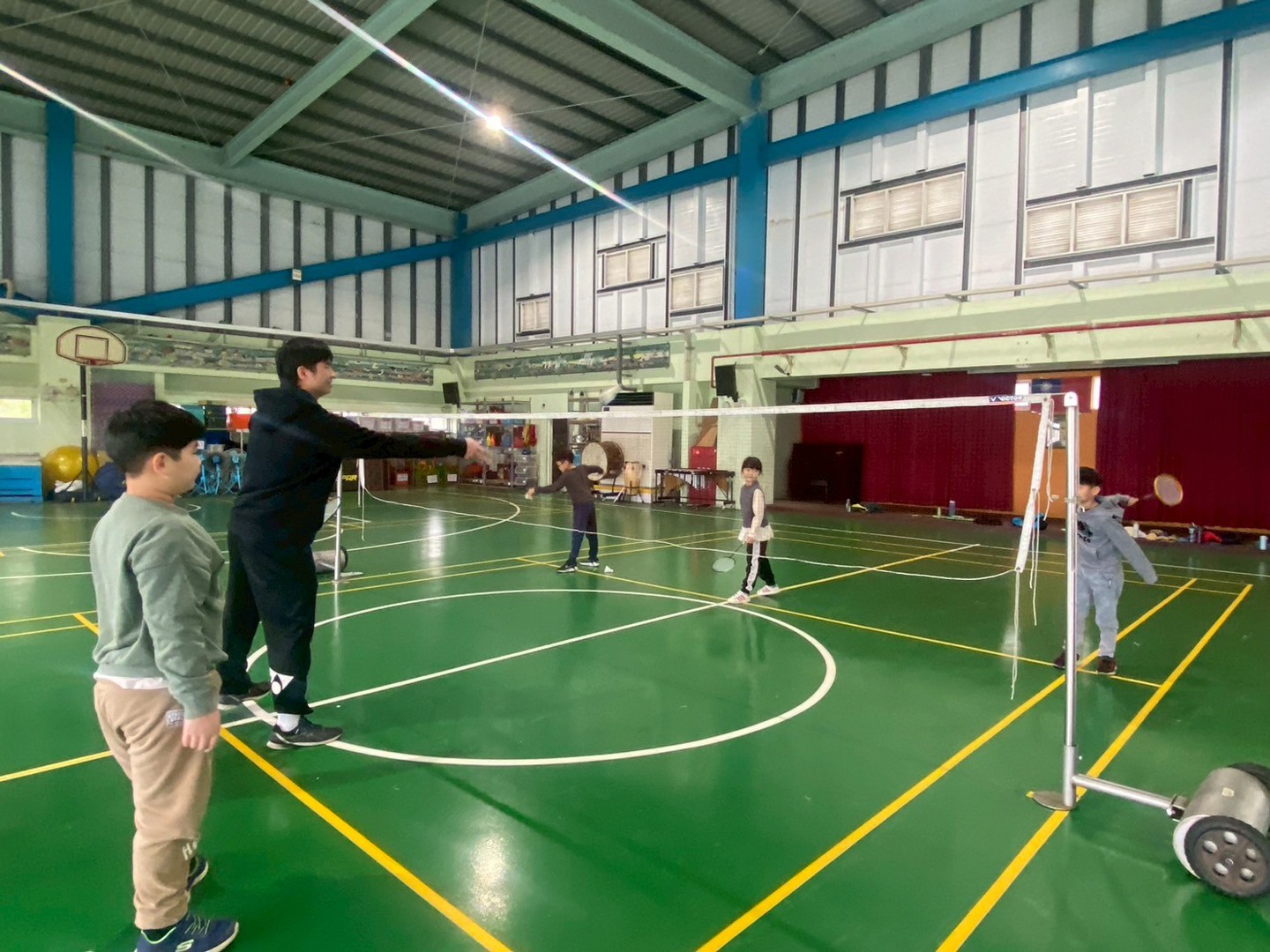 第四天的羽球營,在老師指導孩子們掌握了基本的握拍與平擊球後,孩子們心心念念的「重頭戲」今日終於登場。
