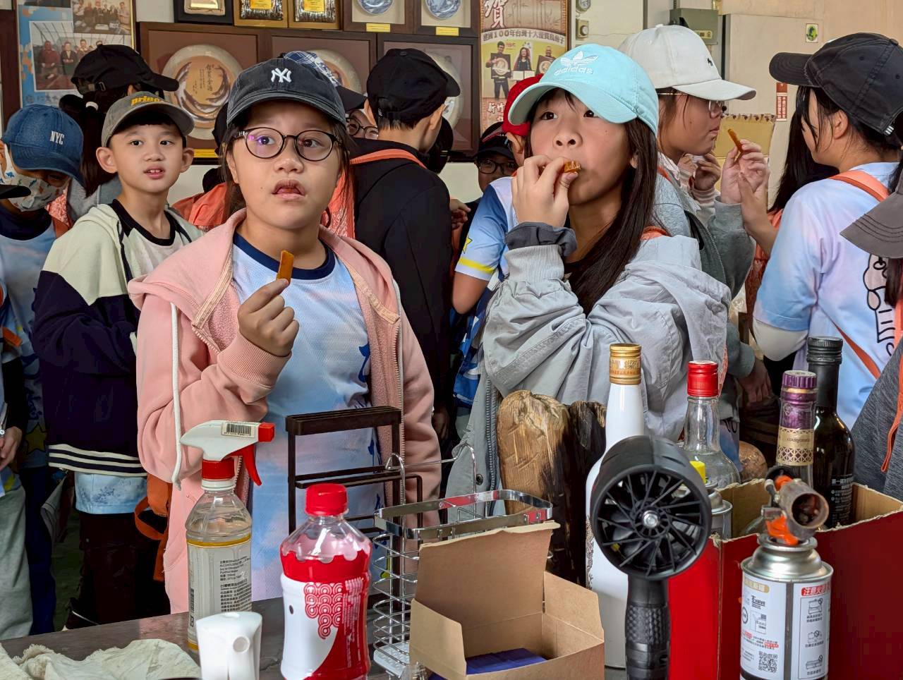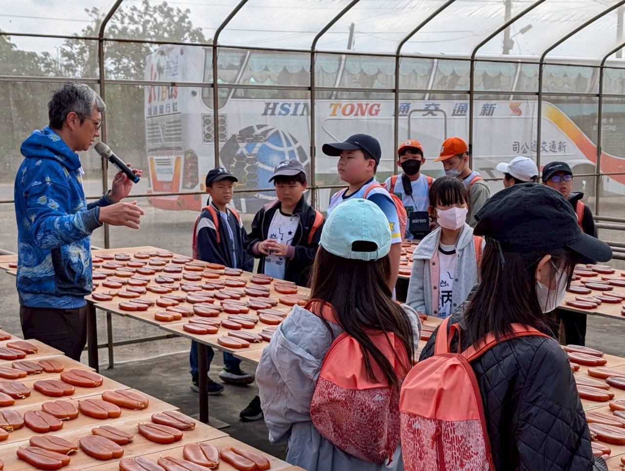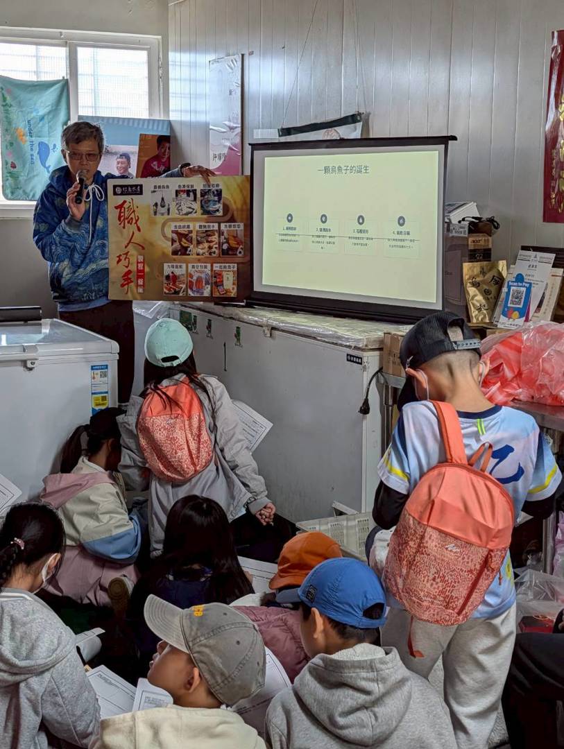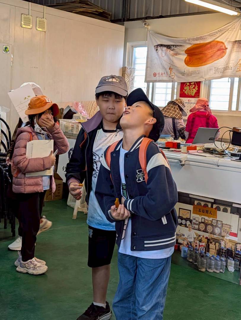 在「竹魚水產」老闆許志豪先生的詳細解說下,小朋友們一窺烏魚子製作過程中的秘密。他向學生們展示了從捕撈到加工、品管把關,最終成就頂級烏魚子的每個環節,並現場參觀正在曝曬、風乾的烏魚子半成品,讓小朋友們大開眼界。