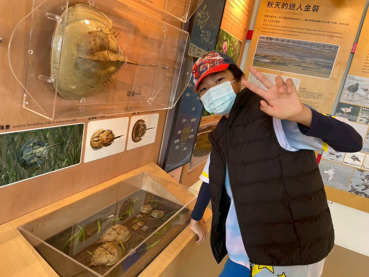 賞蟹步道當天因為風速過強暫停開放,因此主要以室內濕地生態館參觀,認識不同品種螃蟹的生存習性和棲息地,體會到大自然中生命的多樣性與脆弱。