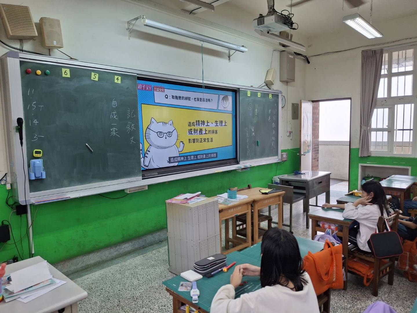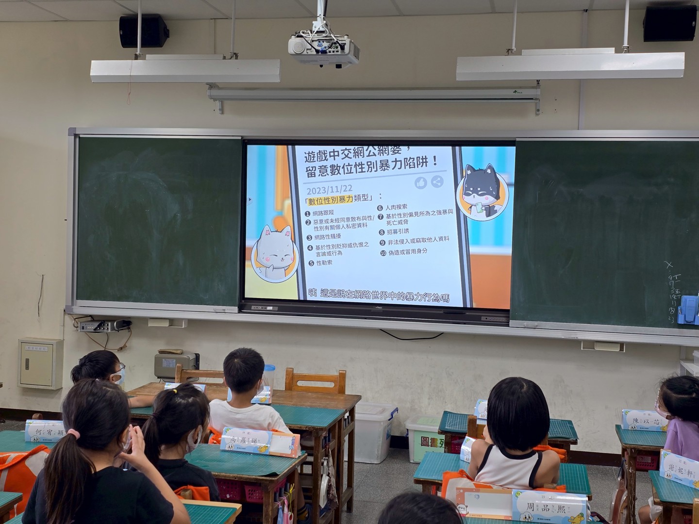 隨後,針對現今網路環境,性別平等教育則以「網路不涉陷—數位性別暴力知多少?」為題。透過實例解析,提醒同學在數位世界中保護隱私,並學習尊重他人的身體自主權,共同防範數位暴力。