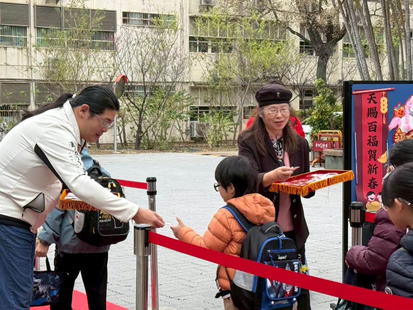 歡樂的農曆年假結束,新竹國小附設幼兒園於今日熱鬧開學!為了幫助小寶貝們克服假期後的「分離焦慮」,開心重返校園,園方特別以「馬年」為主題,精心佈置了充滿童趣與年味的校園環境,並舉辦「小馬迎春」趣味開學活動。胡如茵校長偕同家長會長路凱傑會長、四處室主任在校門口親自迎接學童,為新學期揭開熱鬧的序幕。校長、家長會長與四處室主任發送馬年開運小御守,馬年象徵著活力與成長,期盼所有寶貝們在充滿愛的環境中,像小馬一樣無憂無慮、充滿好奇心地探索世界,在馬年裡快樂學習、茁壯成長!