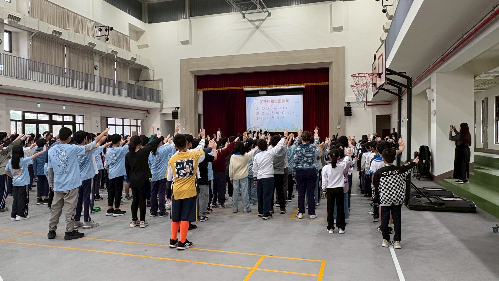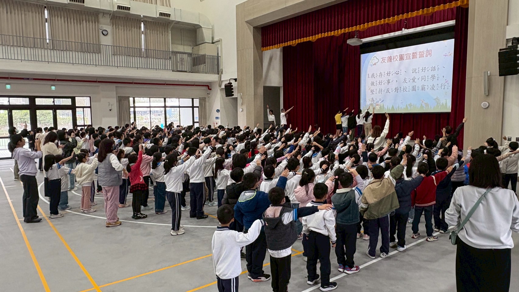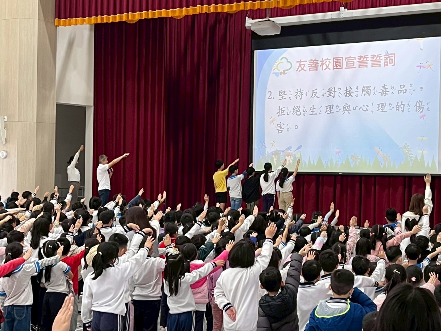 在宣誓活動中,學生們在師長帶領下高聲宣讀誓詞,承諾遠離毒品誘惑、不參與不良組織活動,並勇於拒絕霸凌行為,共同營造尊重、關懷與互助的學習環境。透過公開宣示與集體承諾,強化學生守法觀念與自我保護意識,也讓友善校園理念深植人心。