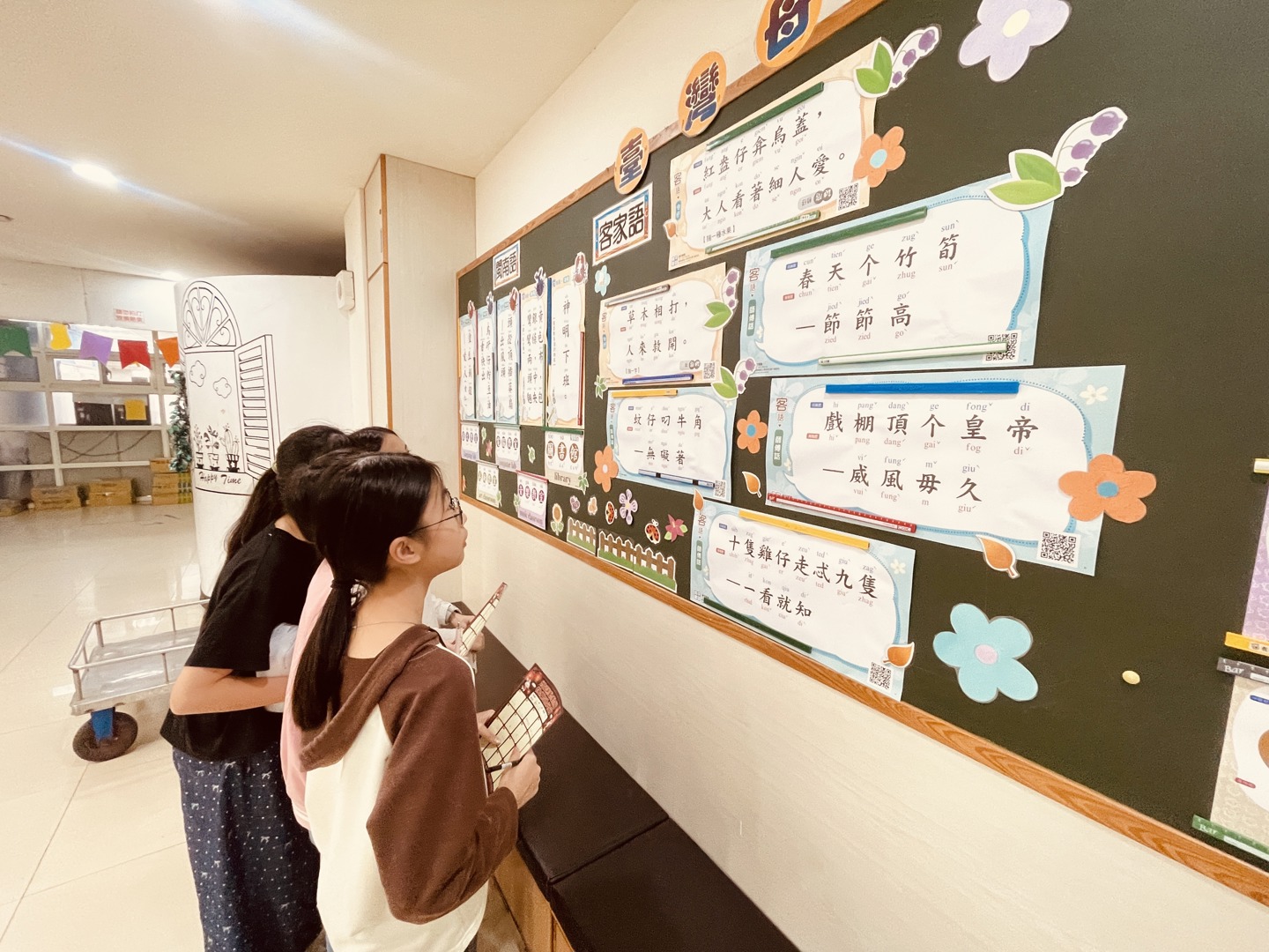 參觀過程中,同學們認真閱讀展板上的介紹資料,並不時低聲練習以母語朗讀有趣的詞句。看到與生活息息相關的俗諺與猜謎,大家紛紛表示感到新鮮又親切。有學生分享:「原來平常阿公阿嬤說的話,背後都有這麼深的意思。」也有同學說:「用母語念出來特別有感覺。」