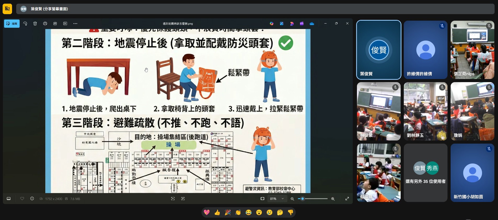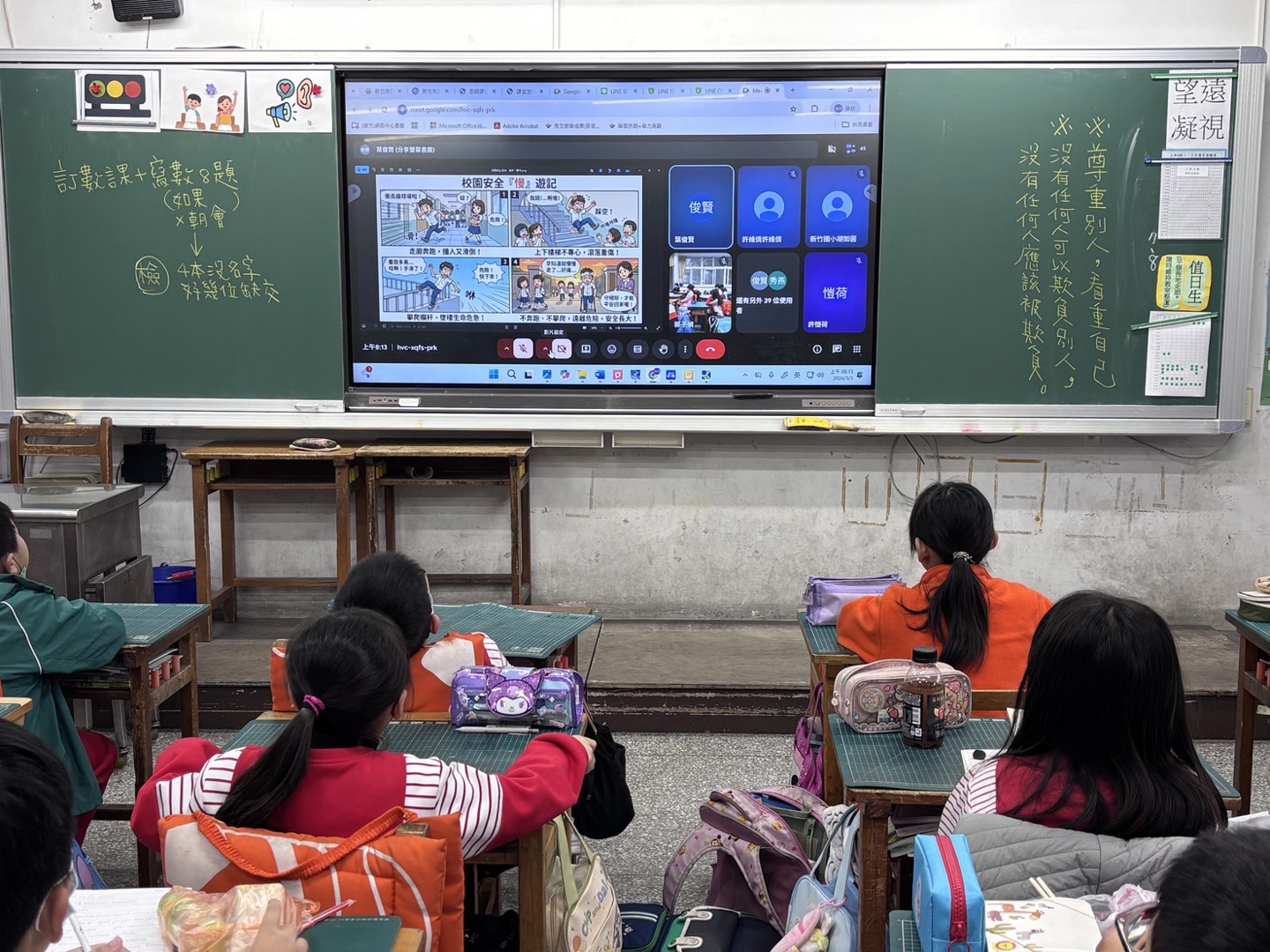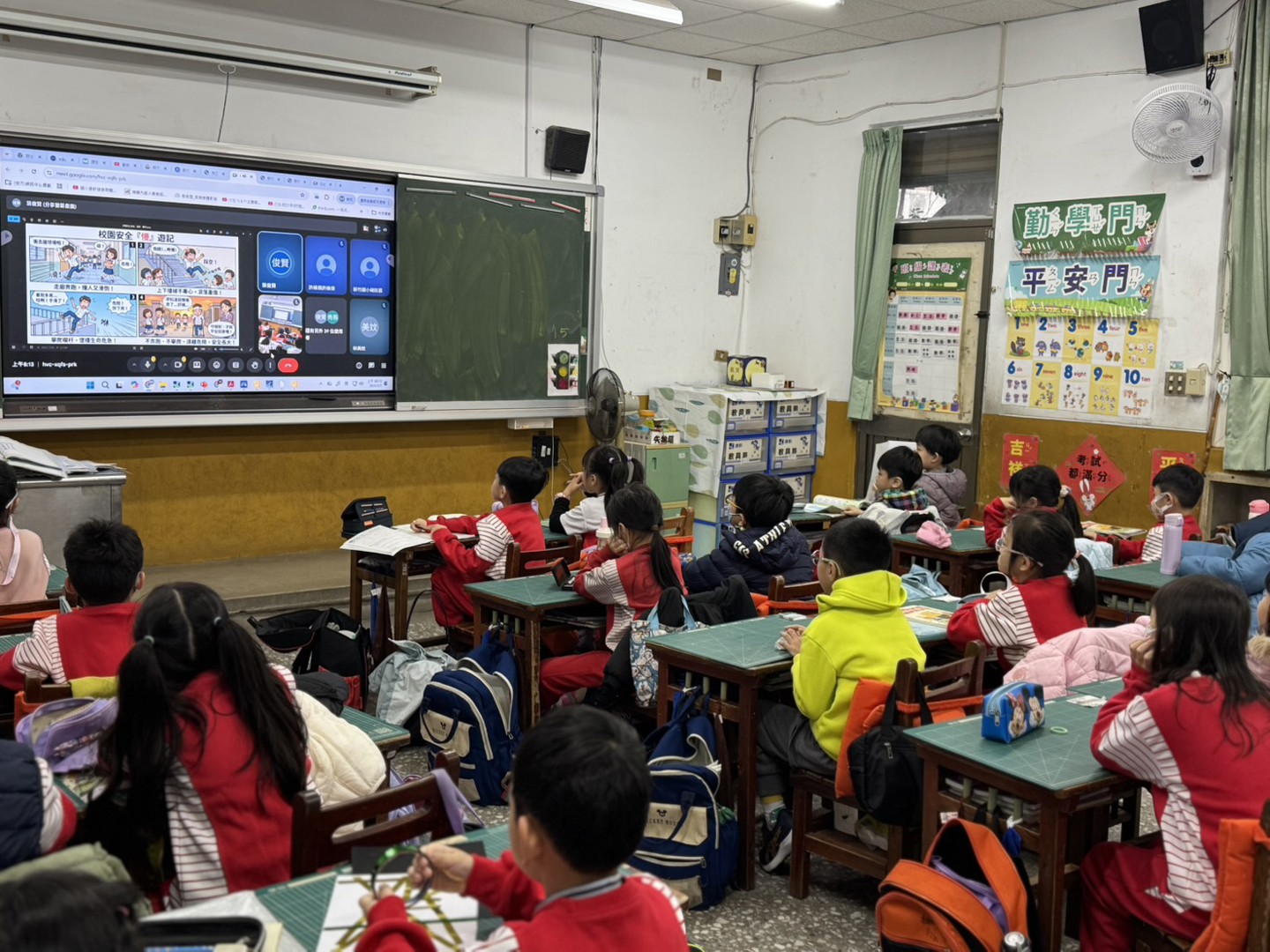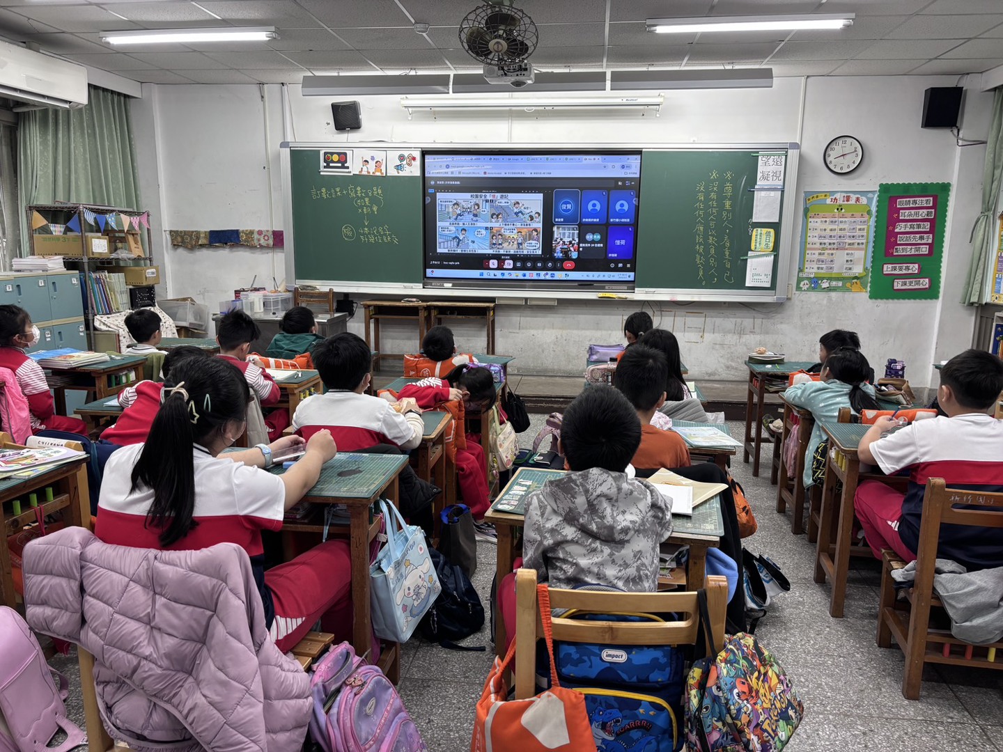 因雨天竹小兒童朝會改為線上,早上8:05全校各班皆開啟觸屏參加。
