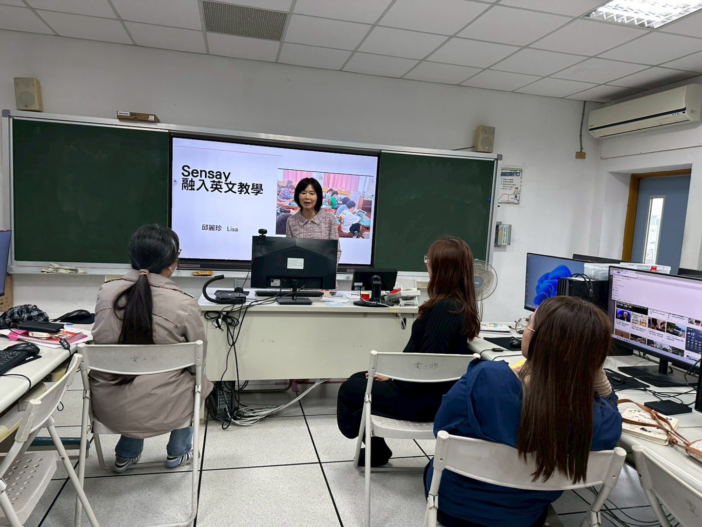 本次社群時間(115.03.04)邀請新竹市東門國小邱麗珍老師入校分享Sensay教學實務,Lisa老師手把手指導Sensay平臺的操作,帶領領域成員將英語課本的內容轉化為可供學生反覆練習的線上自學內容,同時也展示不同成就學生透過Sensay自學的成效。