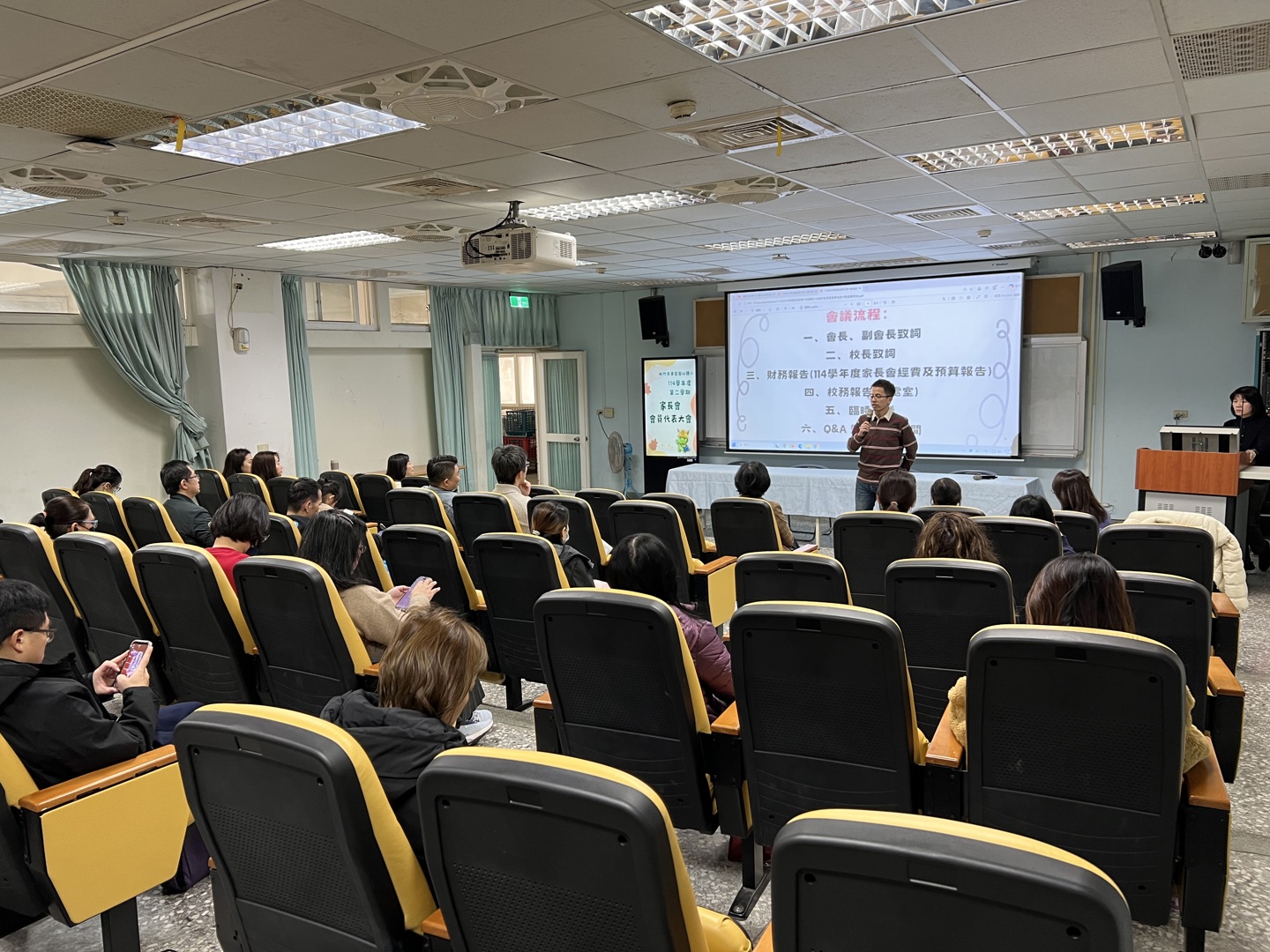 班級座談會後接續召開班級家長代表大會。家長會會長、副會長與財務委員長期支持學校各項校務推動,會議中除了報告家長會各項財務收支情形外,也誠摯邀請更多家長加入參與家長會事務,更鼓勵家長們能加入交通導護志工行列,以實際行動支持校務運作,讓教師能有更多時間專注於班級教學與照顧學生。
