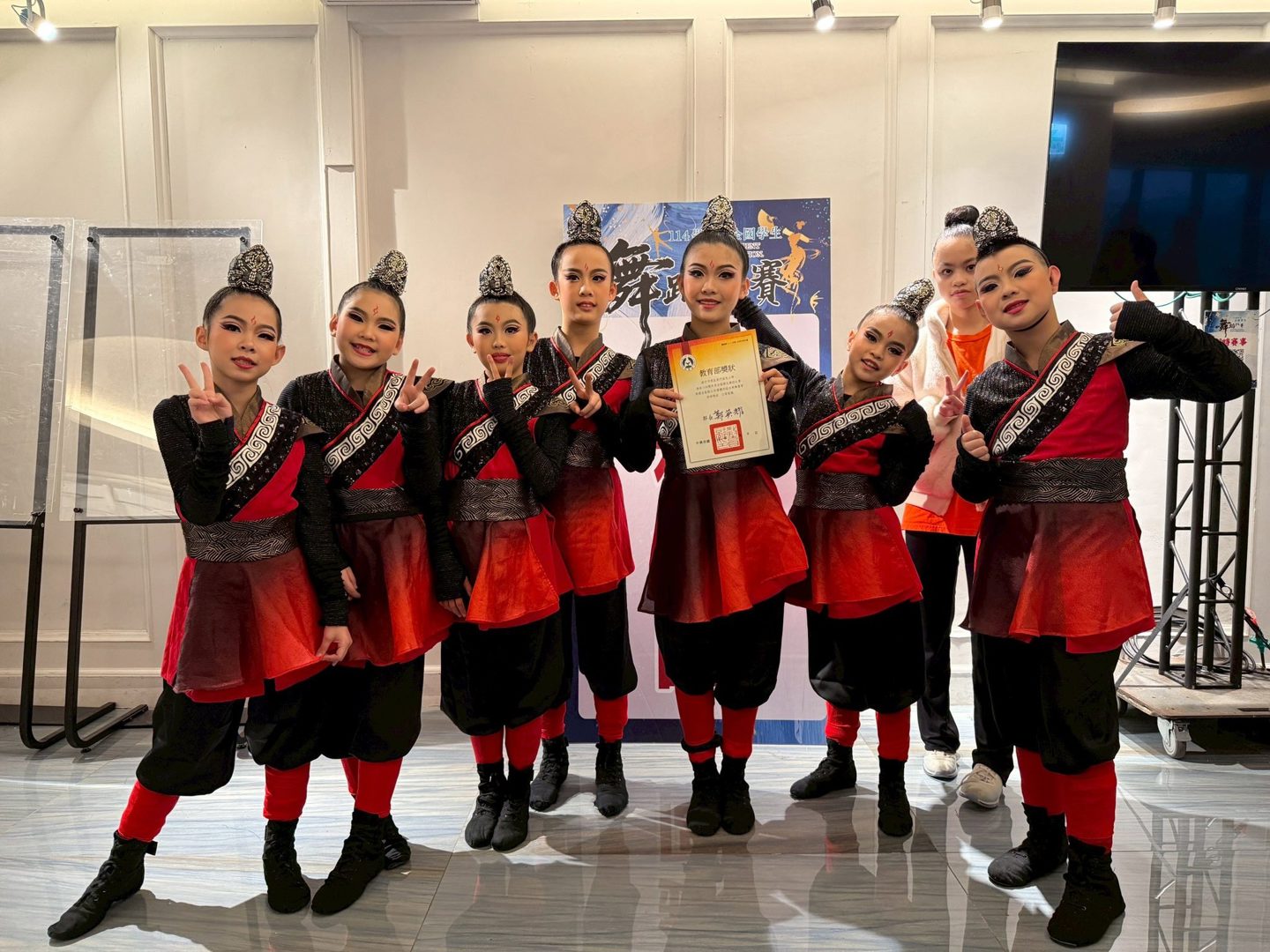 東門國小學生再傳佳績!由本校婕妮、妍蓁、雨喬、定頤、以馨、禹鈞、曉晴、妤帆等同學組成的舞蹈團隊,以作品「射日」參加114學年度全國學生舞蹈比賽,榮獲國小團體古典舞組優等佳績,表現相當亮眼。