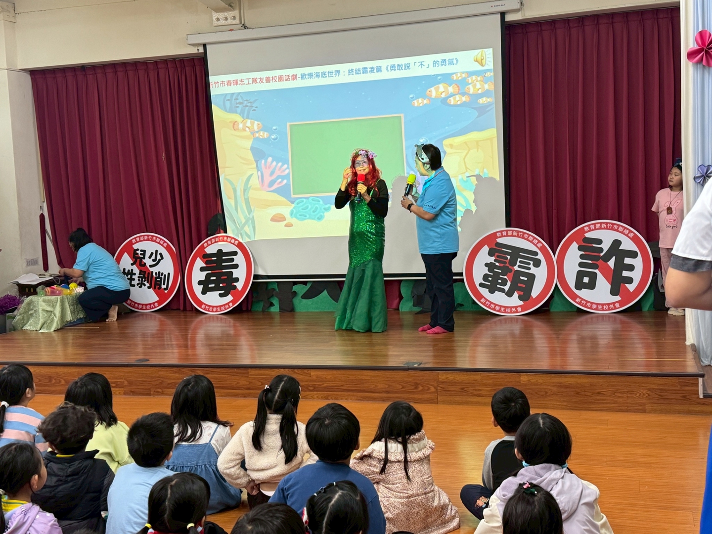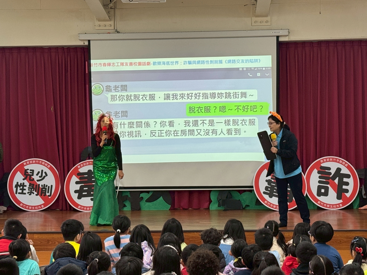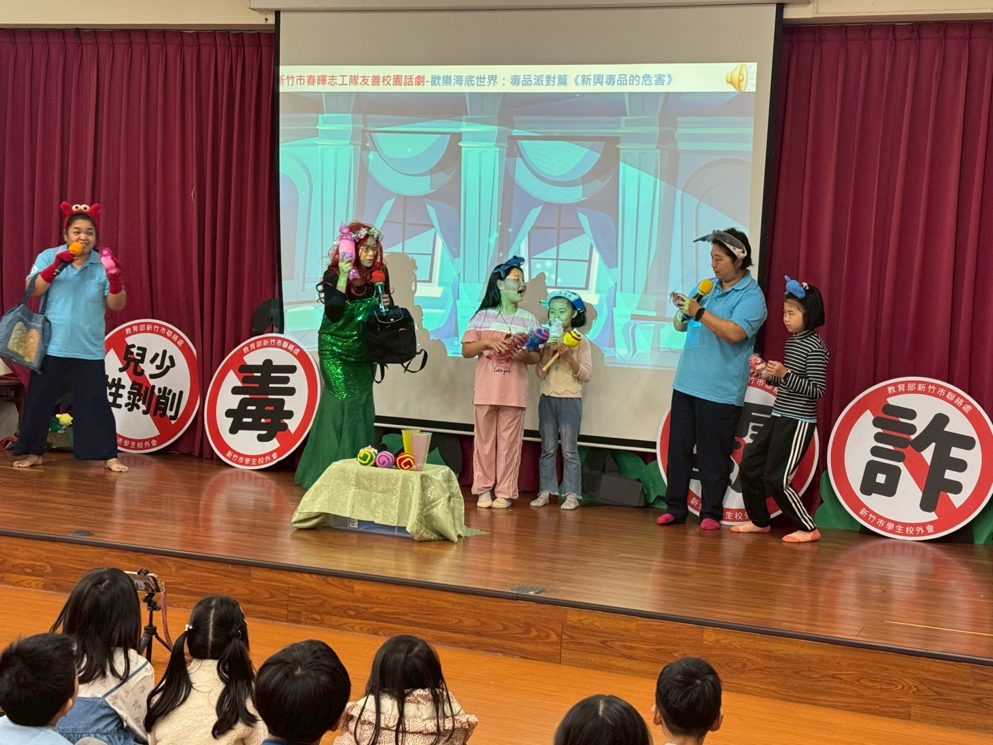 活動中,志工隊以貼近學生生活的情境編排劇情,例如陌生人透過網路或電話進行詐騙、同儕間的霸凌情境,以及毒品偽裝成糖果或飲料的危險案例。透過角色扮演與對話,讓學生了解遇到類似情況時應如何保護自己,並勇於向師長或家長求助。生動的表演吸引學生專注觀賞,現場也不時傳來笑聲與掌聲,氣氛相當熱絡。