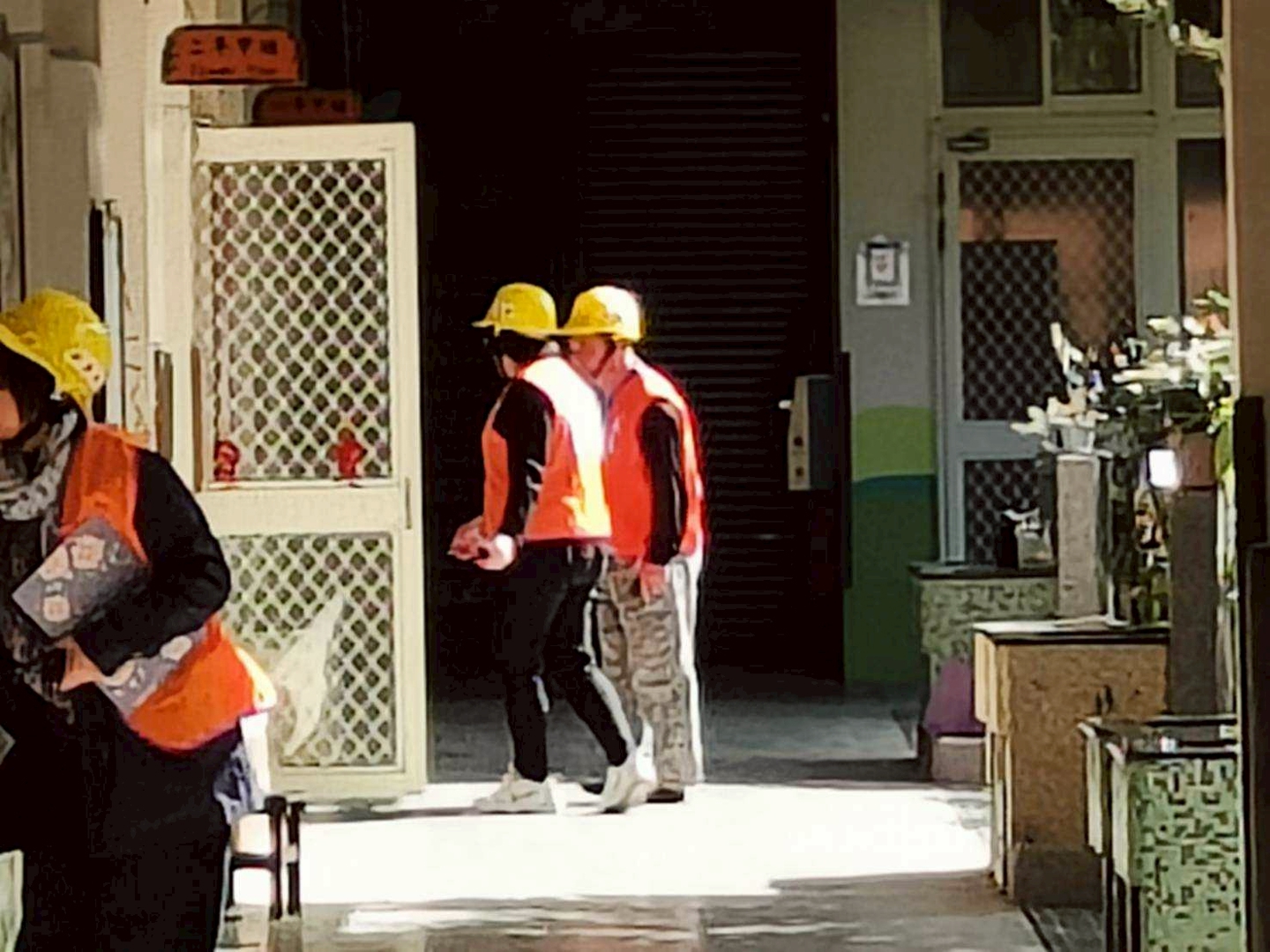 接續進行壞人入侵演練,模擬陌生人士試圖進入校園的情境。當校方發現可疑人士後,立即啟動校園安全通報與應變機制。各班老師迅速關閉教室門窗並加強防護措施,同時安撫學生情緒,確保學生留在安全的教室內。行政人員則依據校園安全處理流程進行通報與協助處理,整個演練過程緊湊且有秩序。