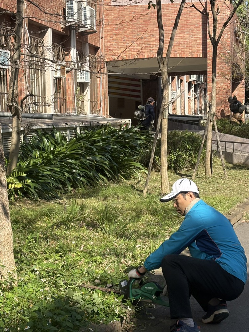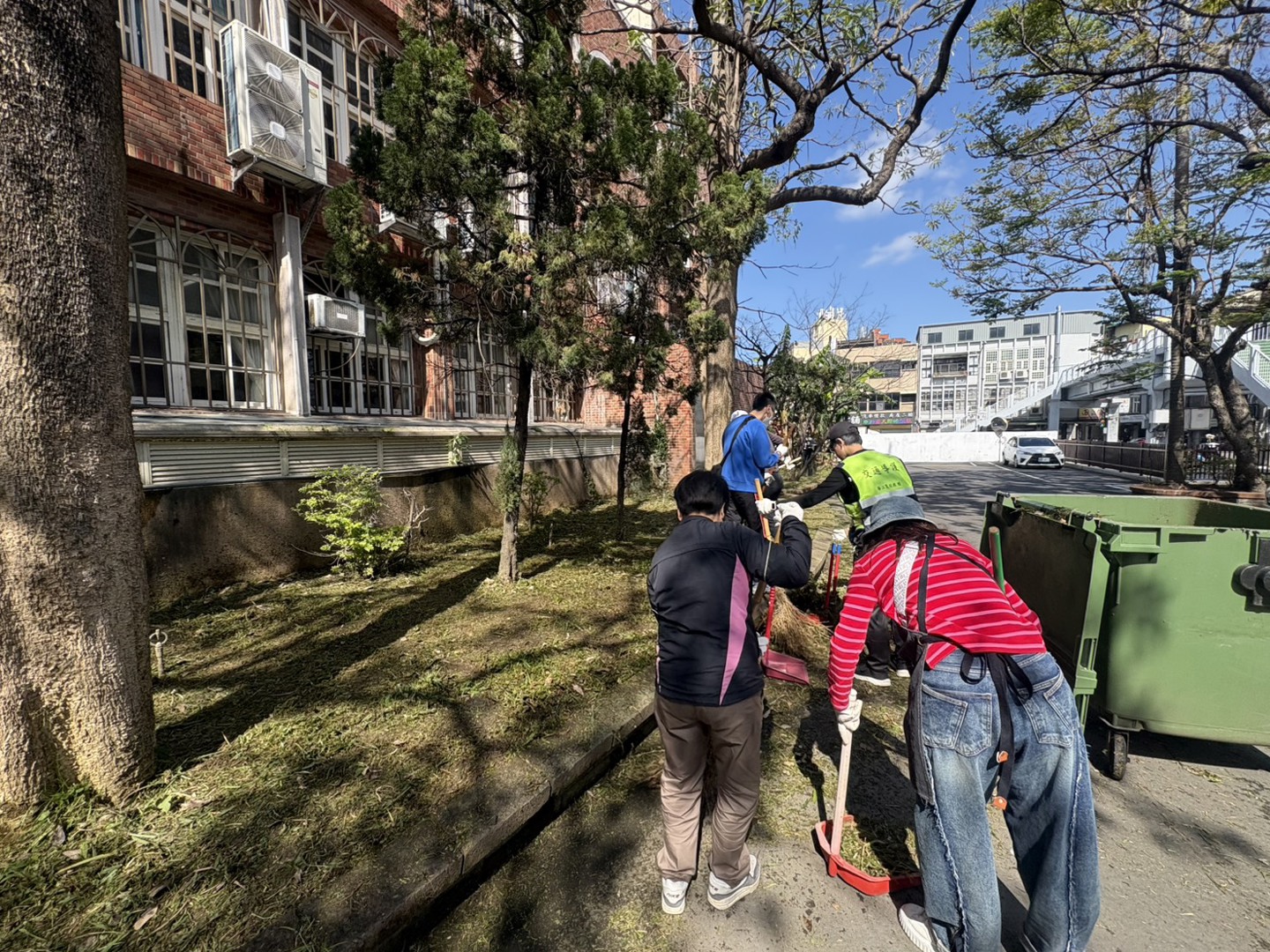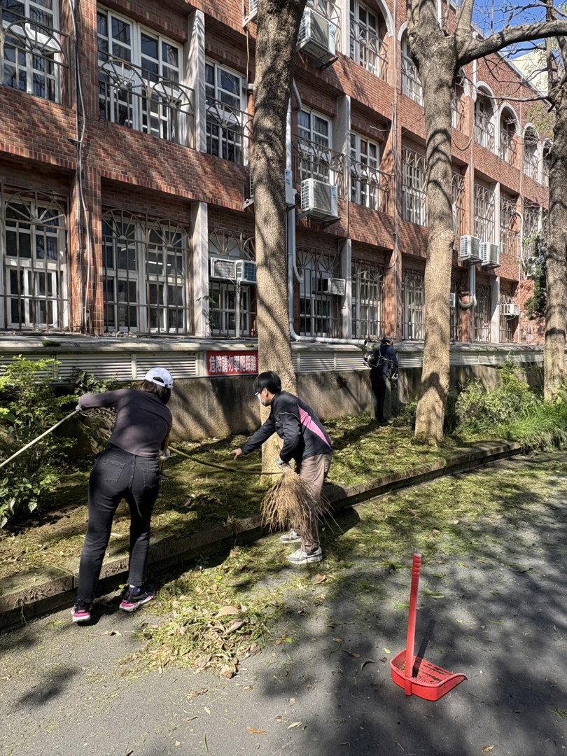 今日受冷氣團影響,清晨各地氣溫偏低,根據觀測資料顯示,新竹縣關西工作站測得9.0度全台最低溫。由於這波冷氣團屬於乾冷的性質,白天陽光照射下,北部及東北部高溫仍可上升到18、19度,一早本校總務處最優秀的服務人員趁著春天暖陽灑下聚集在西大路校門口附近,由總務主任帶隊進行大門兩側花圃的雜草修剪及枯枝清除,大家團結賣力地清除著~很開心一下子就完成修剪!花圃經過整理過後環境整個亮了起來!歡迎春天的到來!!!