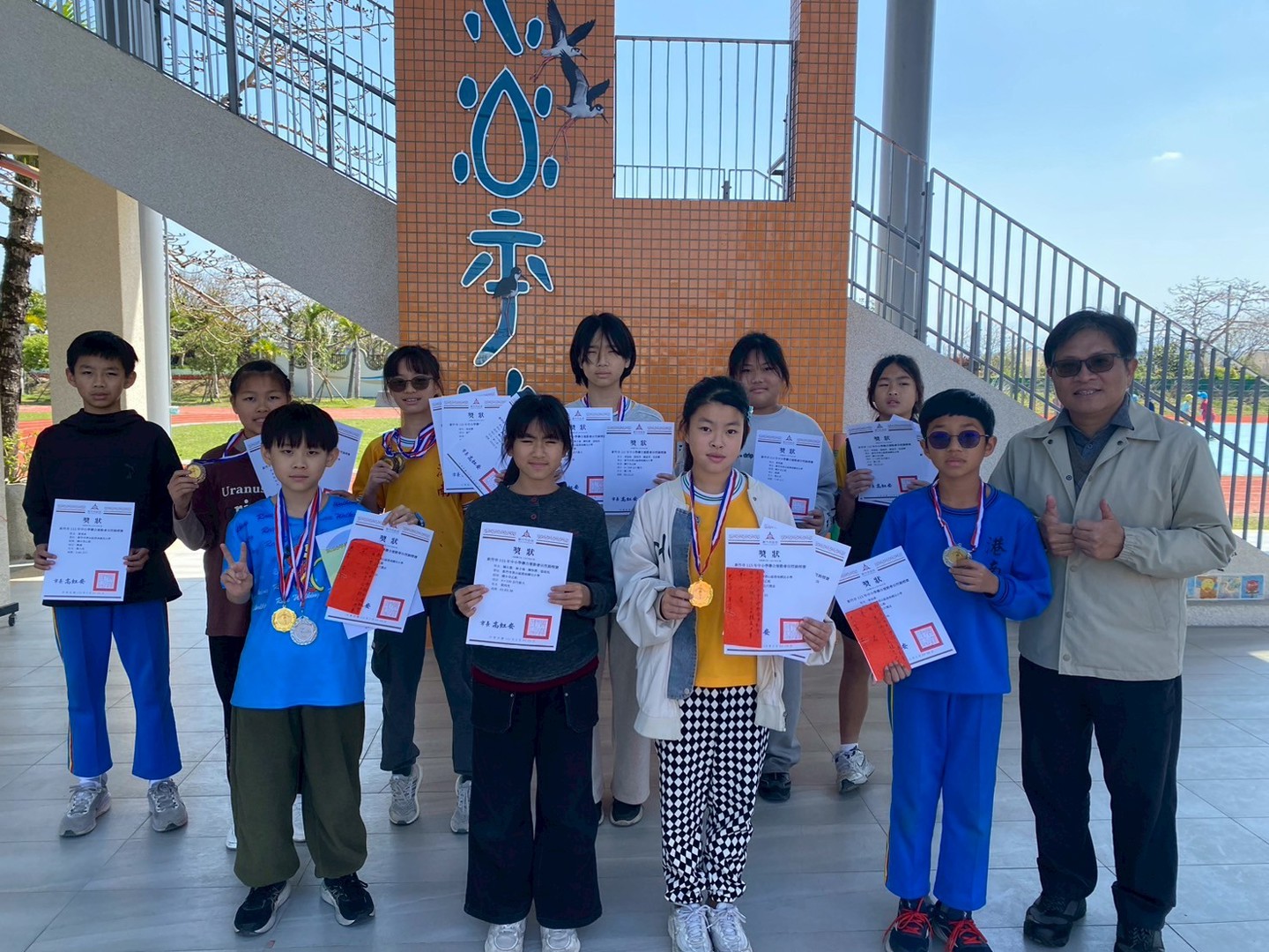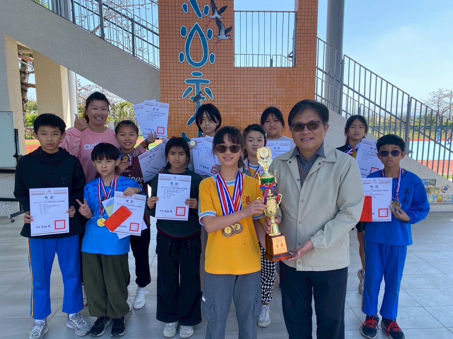 115.03.12 課間活動時,學務處頒發115年新竹市中小學田徑錦標賽獲獎選手並獻獎。