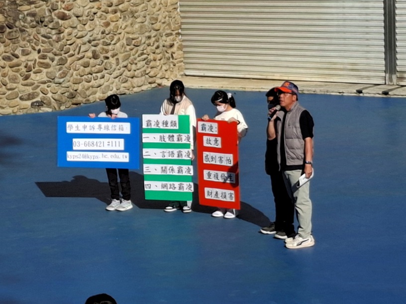 科園國小與114年下學期03/16(一)舉行學生朝會。針對反霸凌與申訴制度對全校師生做宣導。