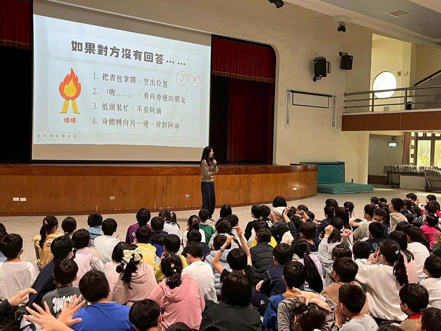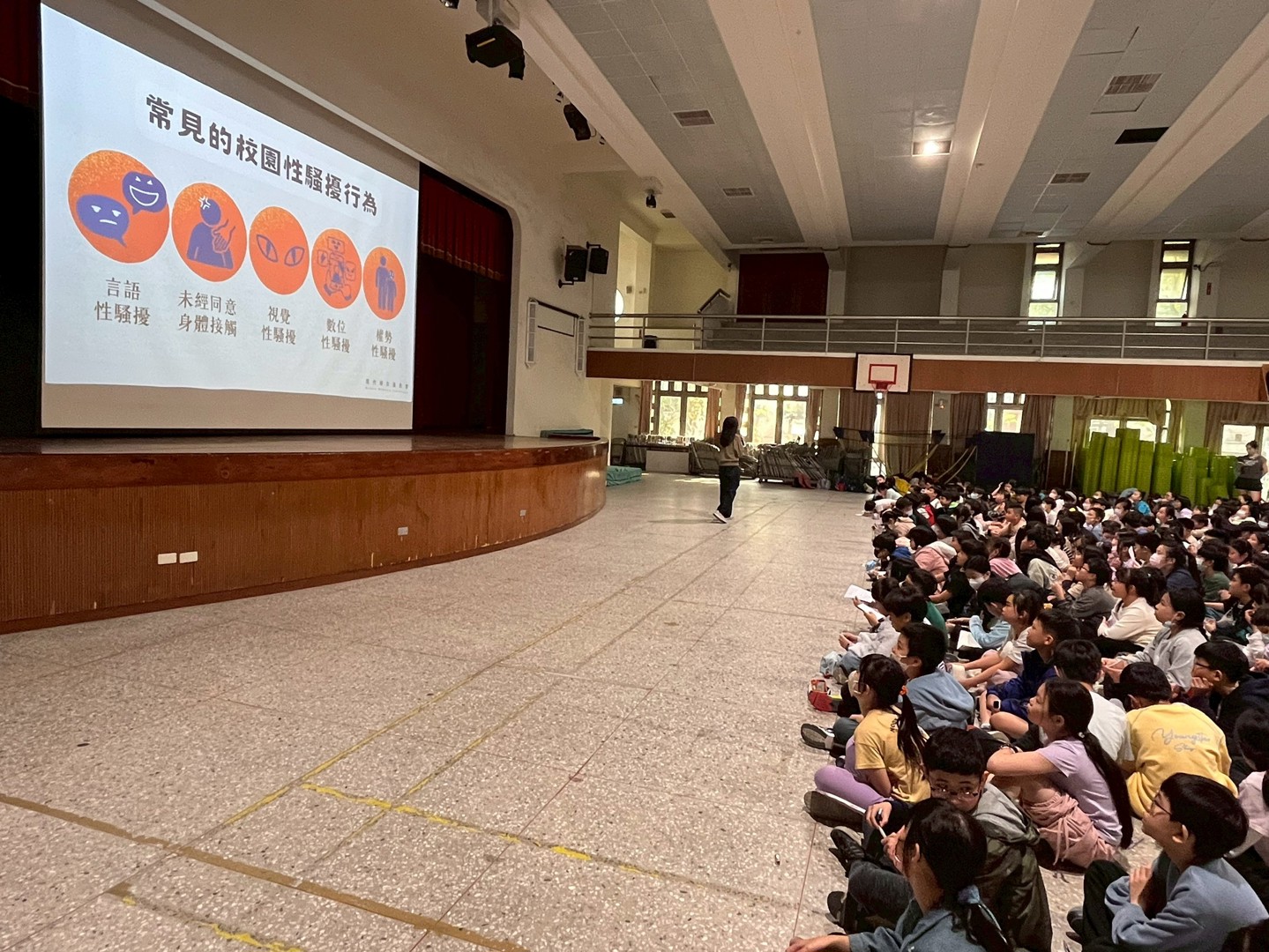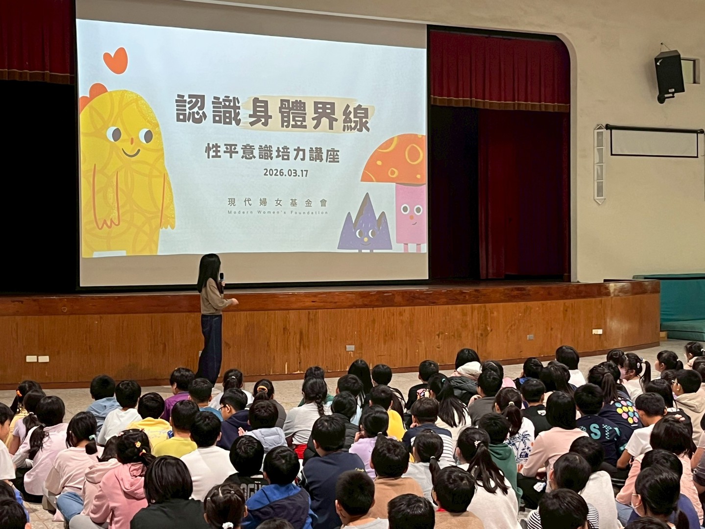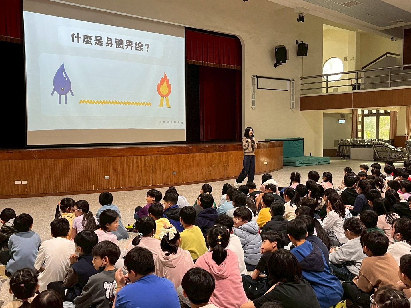 為營造友善校園環境並落實性別平等教育,本校特別邀請「現代婦女基金會」林庭伃老師蒞校演講。林老師以「守護身體界線,尊重從心開始」為題,帶領全校師生深入探討人際互動中不可忽視的空間距離與法律規範。