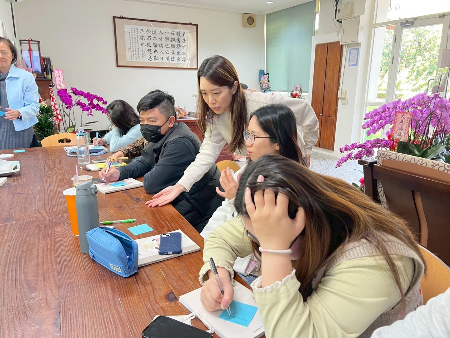 這場無聲的體驗讓老師們深受震撼。扮演蒙眼者的人分享了從恐慌、焦慮到逐漸放鬆的進步過程;而守護者則在安靜中,體會到那份「想幫忙卻不能代勞」的強烈責任與緊張。透過小組分享,大家誠實面對自己的內心起伏,覺察到進步的喜悅與脆弱的時刻。