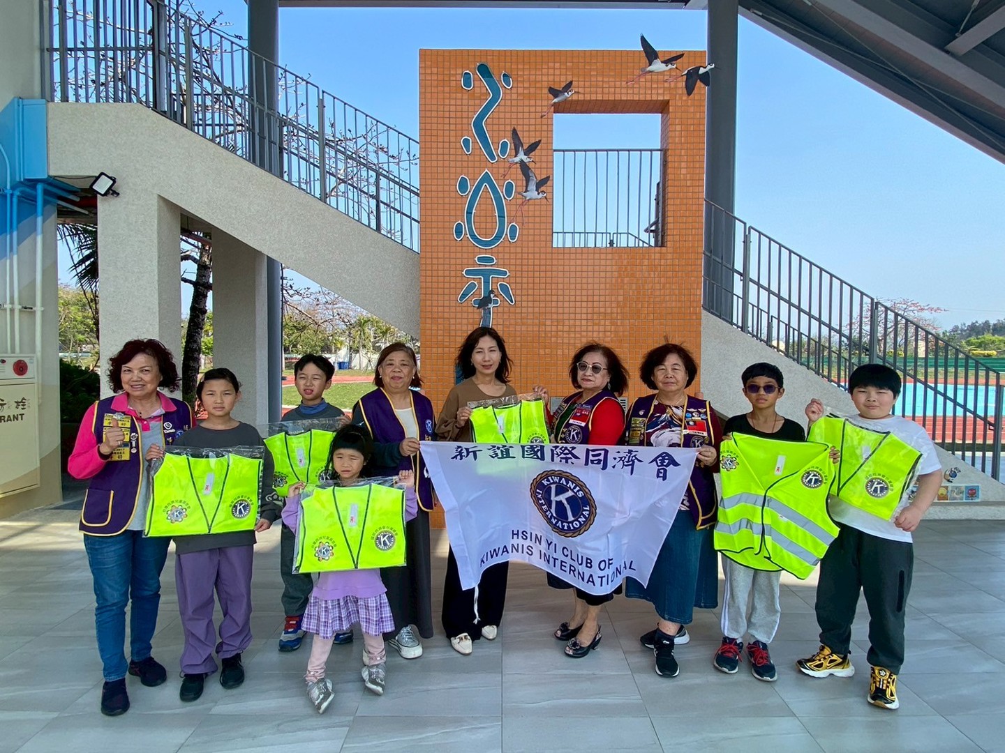 115.03.18 午後,國際同濟會新誼會到校頒贈交通護背心,由學務處靜怡主任與學生代表受贈並回贈感謝狀,感謝同濟會守護港南親師生行的安全。