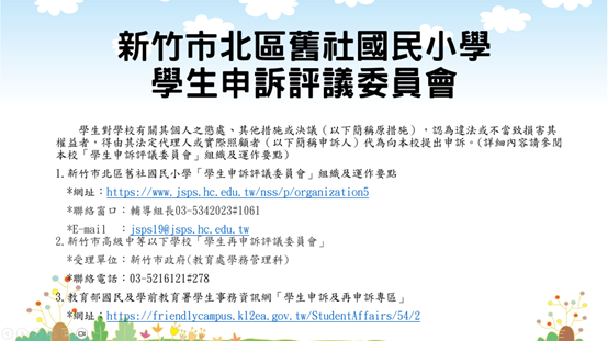*新竹市北區舊社國民小學「學生申訴評議委員會」組織及運作要點