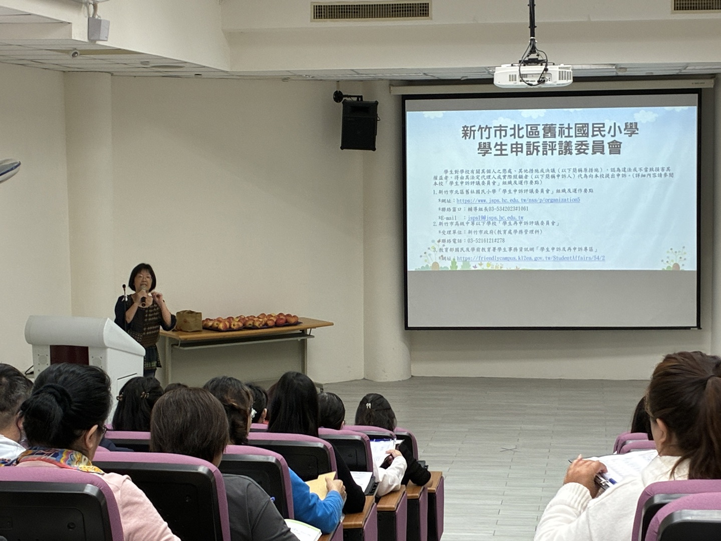 1150318下午召開舊社全校教師會議,進行「學生申訴及再申訴辦法宣導」。透過宣導方式讓全校教師了解此辦法的目的與SOP流程,並請教師協助進行學生與家長方面的宣導。