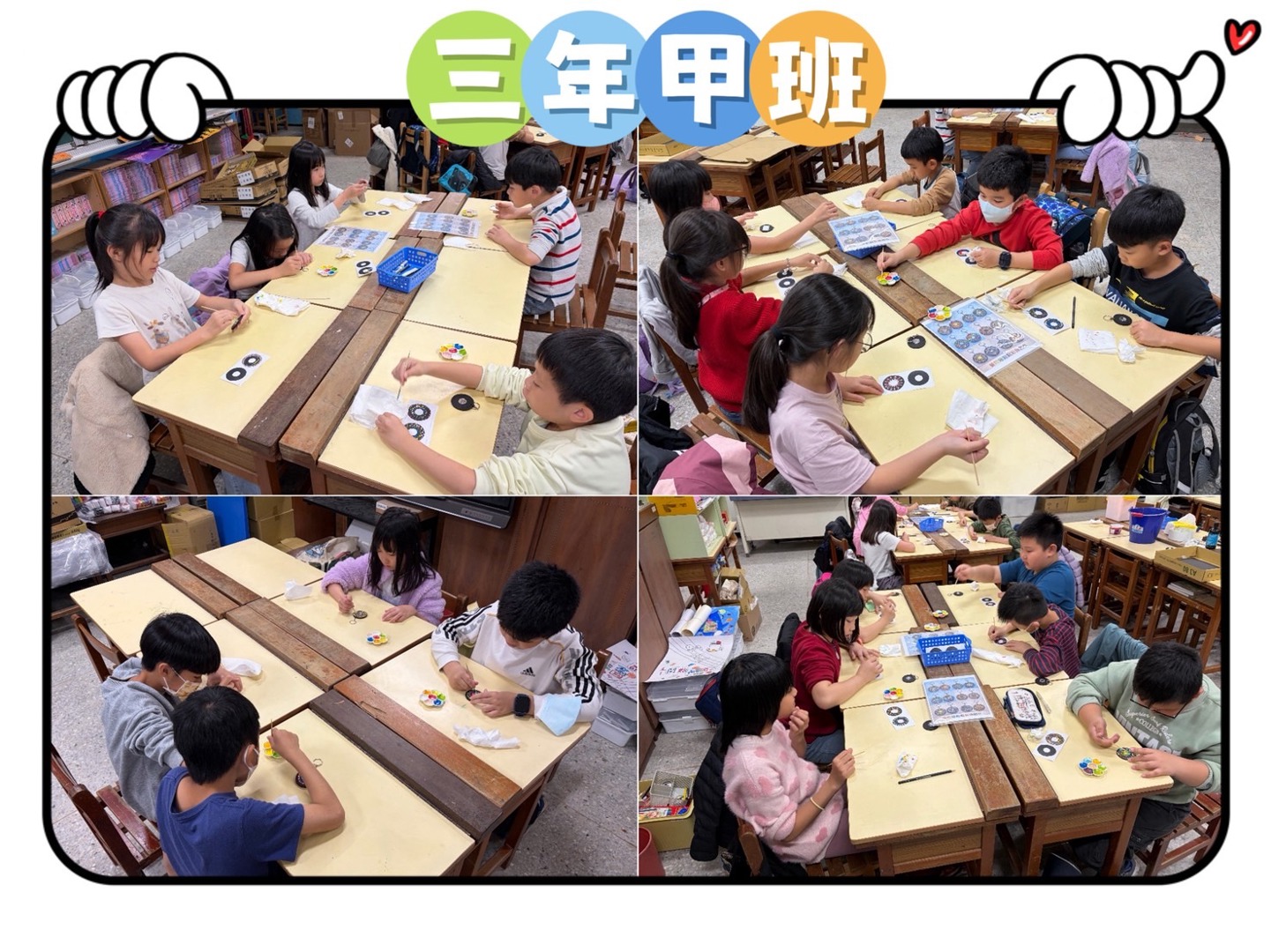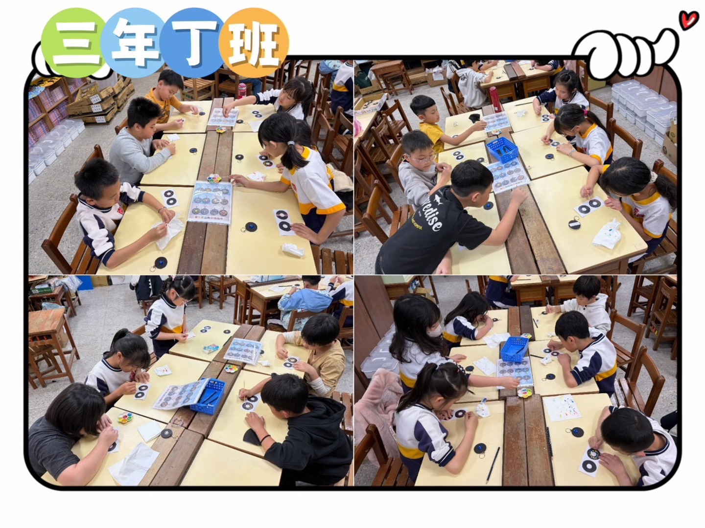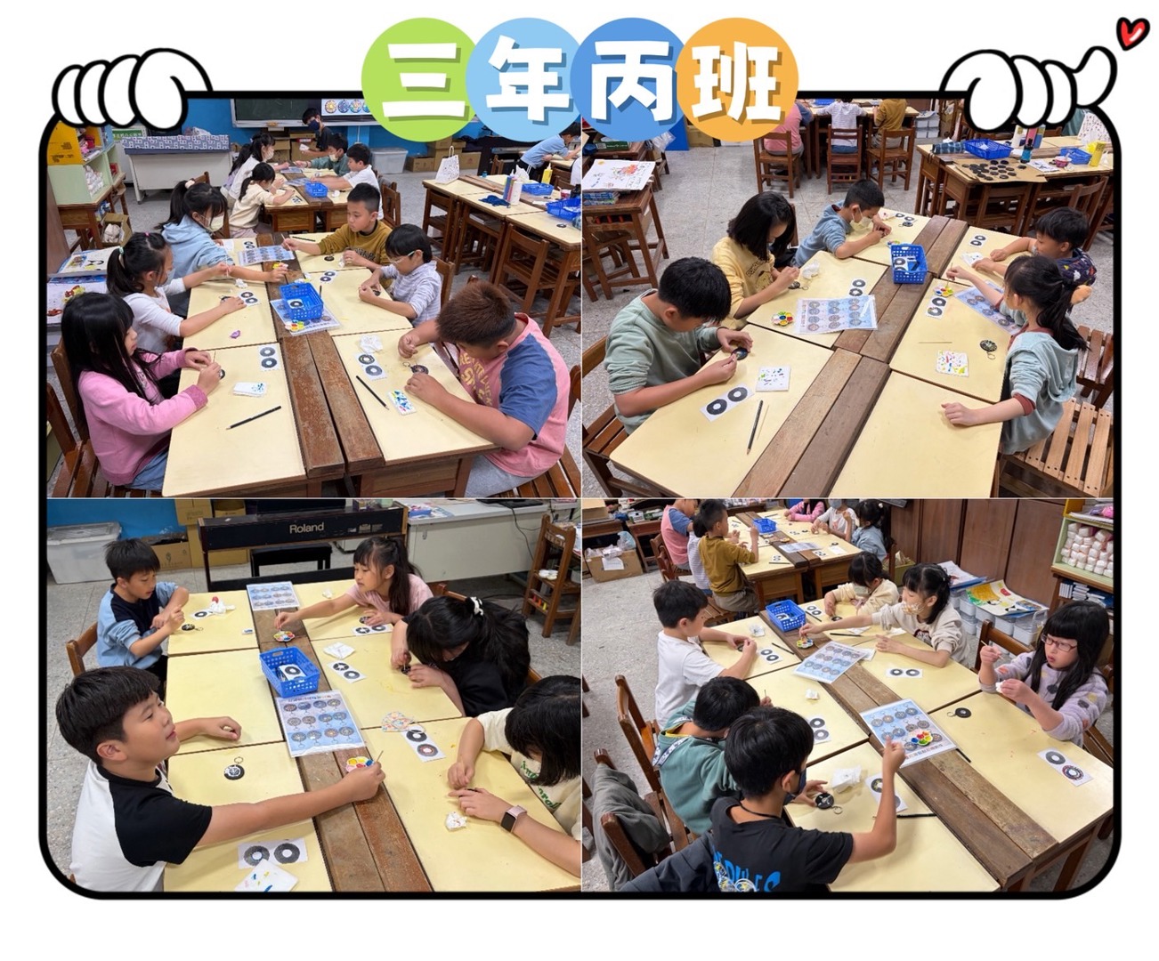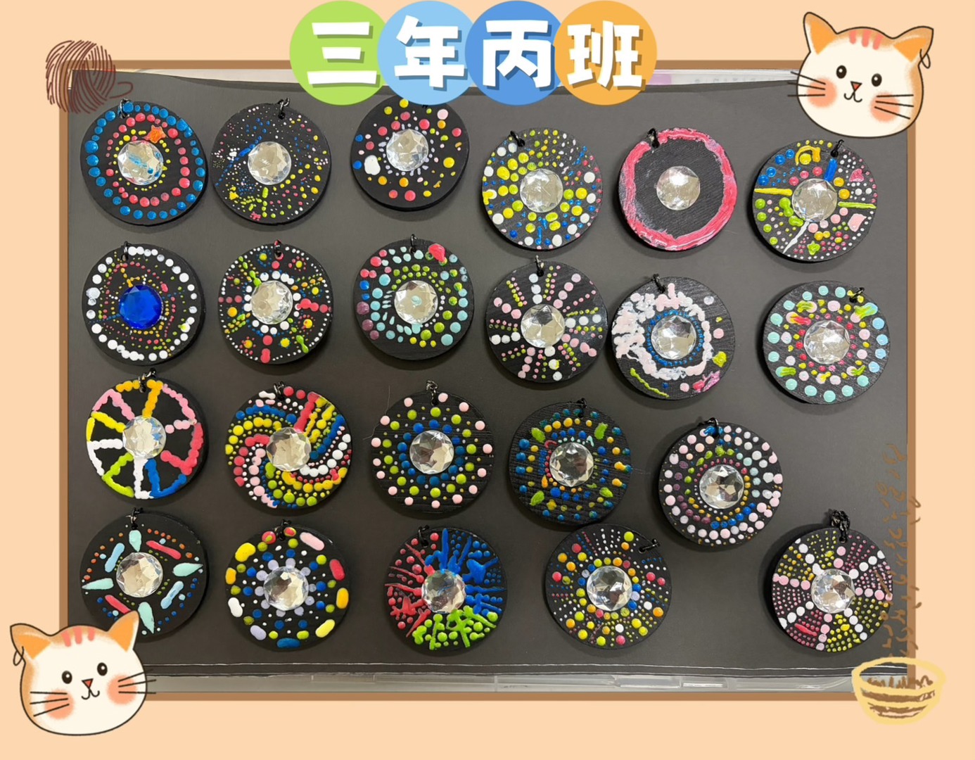 少棋老師以活潑有趣的教學方式,引導孩子從觀察生活中的各種形狀出發,進一步認識基礎三原色的概念,並理解色彩之間的混合與變化。課程中透過色彩學的簡單介紹,讓學生在操作中學習如何搭配顏色,培養美感與創造力。老師帶領孩子運用基本的點描技法進行彩繪,從點的排列與疊加中感受畫面的節奏與層次之美。最後結合曼陀羅圖案設計,讓學生將自己的創作延伸為實用的鑰匙圈作品,不僅提升學習動機,也增添完成作品的成就感。在過程中,孩子們專注投入、勇於嘗試,展現出豐富的想像力與個人風格,讓藝術學習充滿樂趣與驚喜。