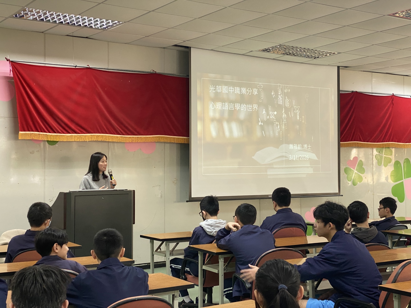 本校於115年3月11日邀請牛津大學蕭教授蒞臨分享「心理語言學的世界」,帶領同學們進入語言與心理交織的奇妙領域。 講座中,教授深入淺出地介紹心理語言學的核心概念,從如何透過肢體語言解讀情緒,到培養對他人感受的敏感度,讓同學們了解語言不僅是溝通工具,更是理解人心的橋樑。教授特別強調研究工作中倫理覺察的重要性,提醒同學們在追求知識的同時,也要尊重研究對象的權益與感受。 最令同學們印象深刻的是教授的鼓勵:「只要肯努力,自己的理想就有機會實現。」從牛津求學到學術研究的經歷分享,激勵同學們勇敢追夢。 這場跨國學術交流不僅開拓了同學們的國際視野,更在心中種下探索心理學的種子!