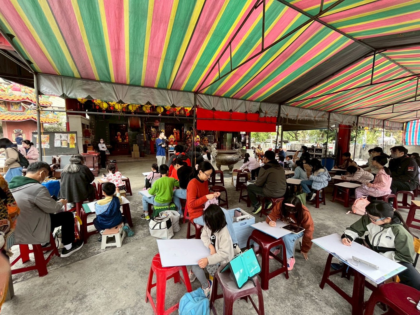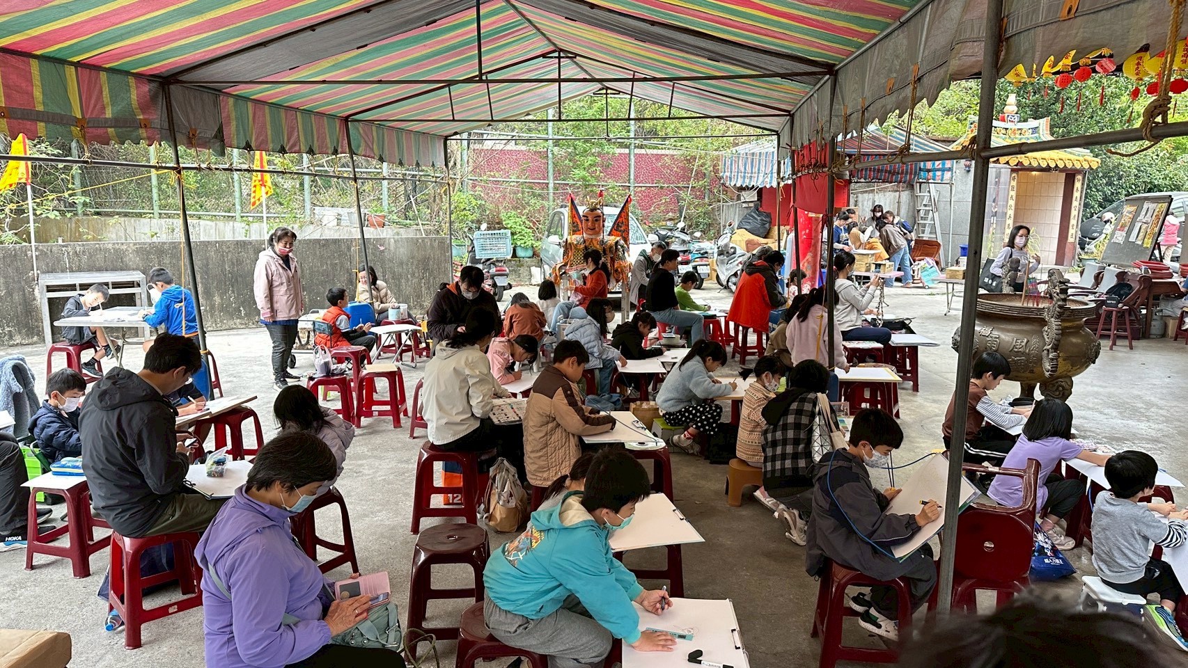 參賽者們自備畫具,在主辦單位提供的四開畫紙上,以福德宮周邊環境為題材進行自由創作 。現場隨處可見孩子們專注的神情,透過水彩、粉蠟筆等多元媒材,將傳統宮廟建築與現代社區風景交織於紙上 。這種走出教室的學習體驗,能讓學生在創作過程中重新觀察生活環境,培養對家鄉的認同感與愛護之心 。