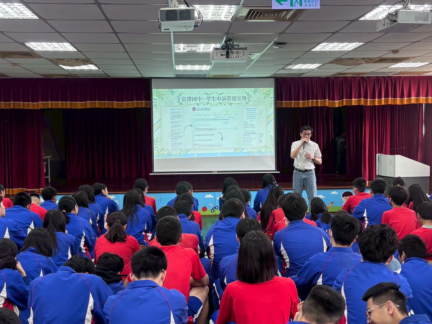 本校於今日學生朝會時間,由生教組進行「學生申訴辦法」宣導說明。