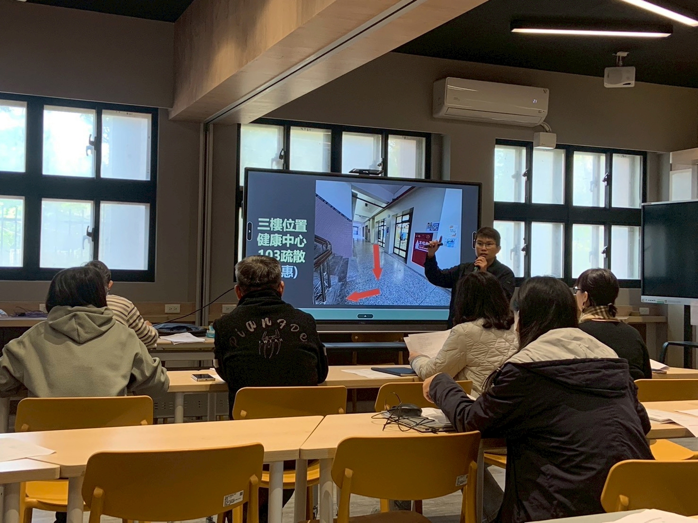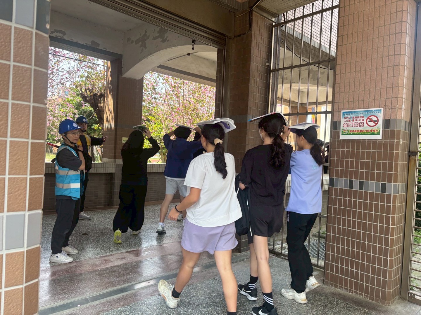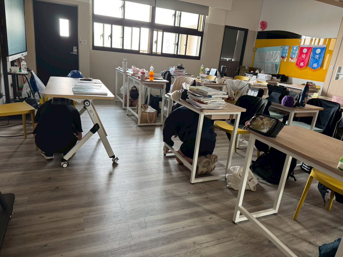 本校於今日實施無預警防災演練。演練時正值午休期間,學生狀態多元,有人午休中、有人抬餐桶,亦有進行打掃工作。警報突發響起後,學生立即進行就地「趴下、掩護、穩住」;待指揮官發布疏散命令後,教師迅速引導學生避難,學生遵循「不語、不跑、不推」原則,有序完成疏散,並於指定地點完成集結。