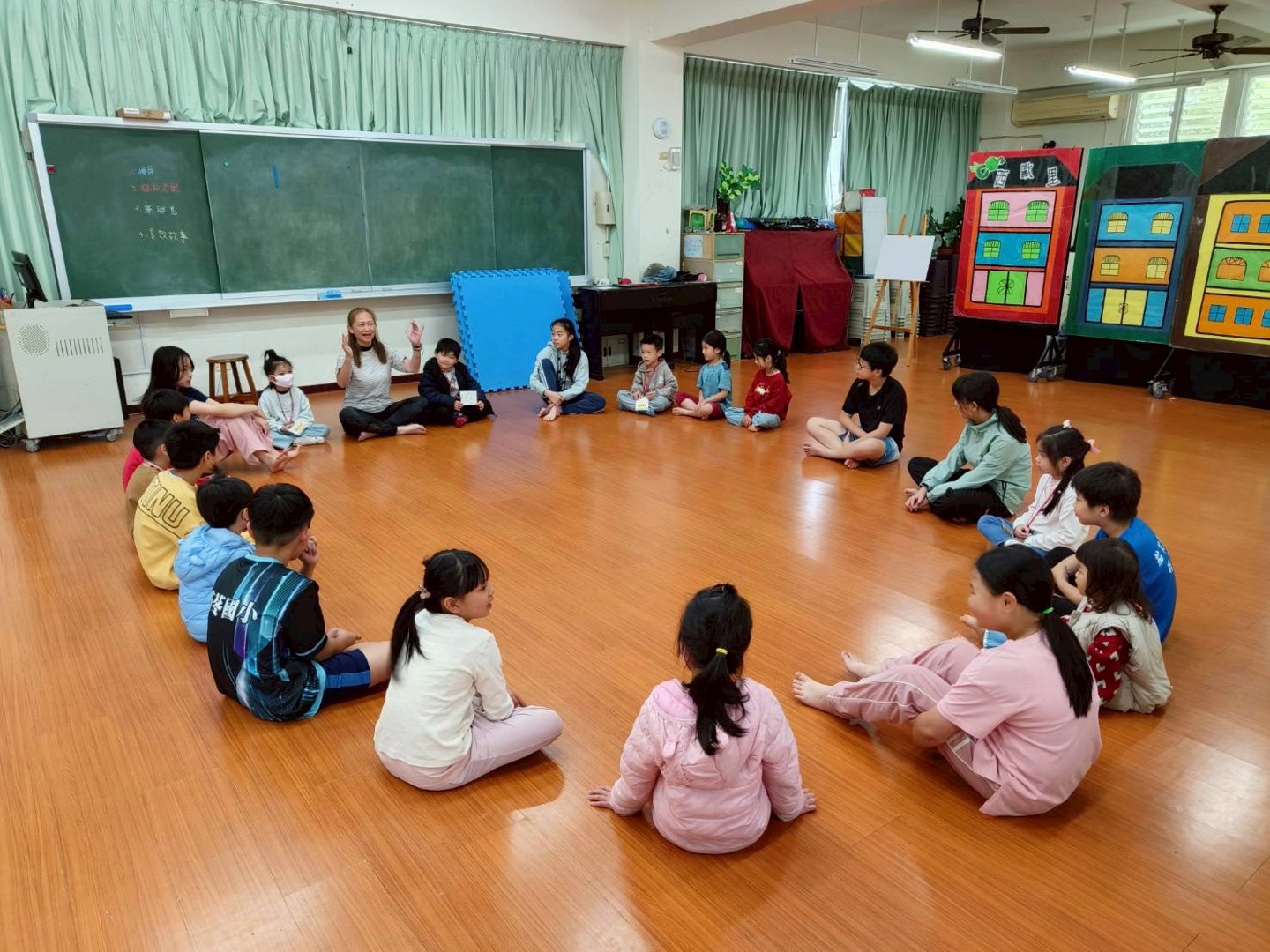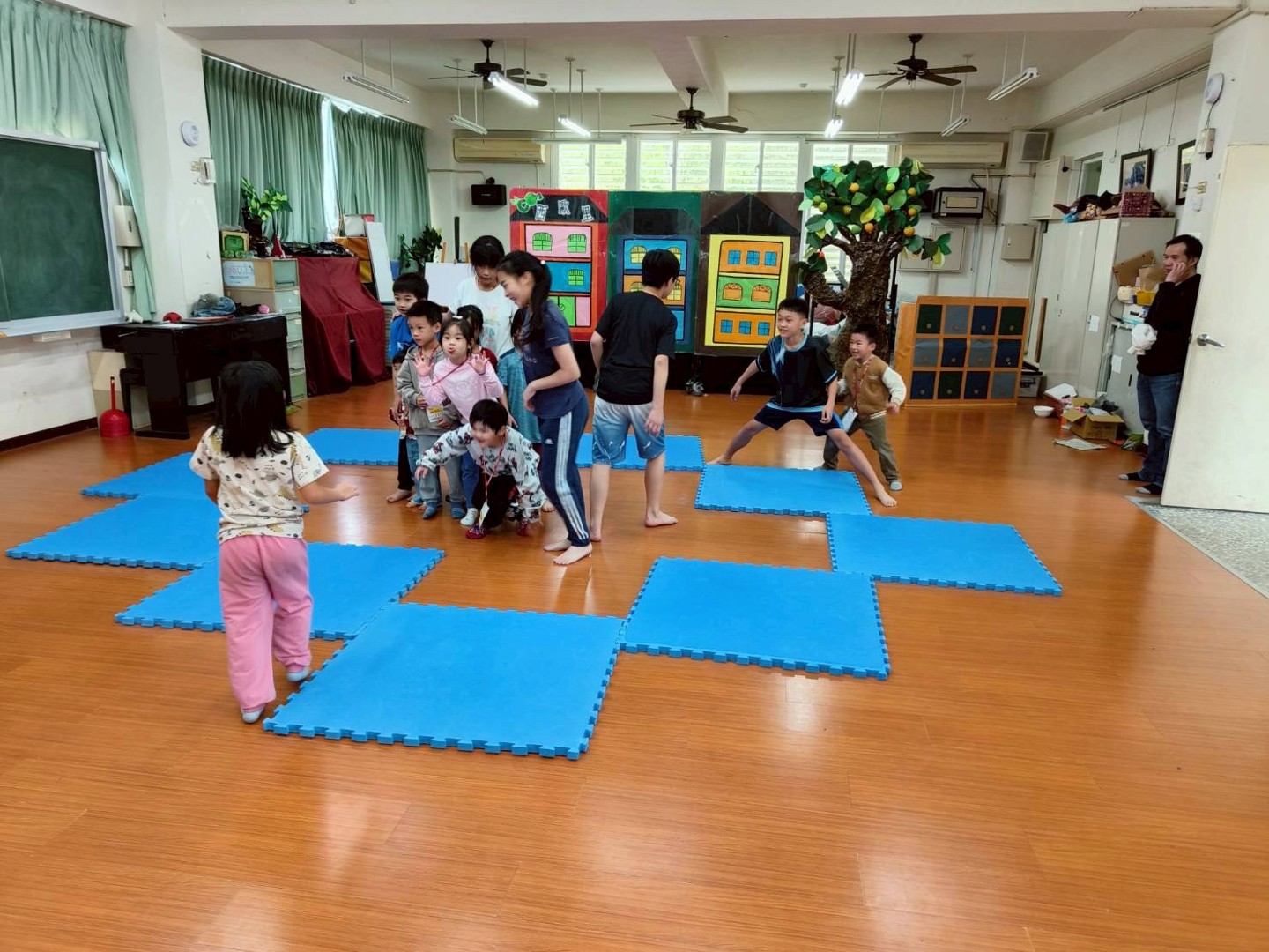 另一個學校特色課程是-戲劇體驗,透過肢體開發與角色扮演,原本害羞的幼兒逐漸放開束縛,與未來的同儕玩成一片。透過這些體驗活動,不僅能消弭孩子對陌生環境的恐懼,更能讓家長親眼看見學校多元且活潑的教學風景。