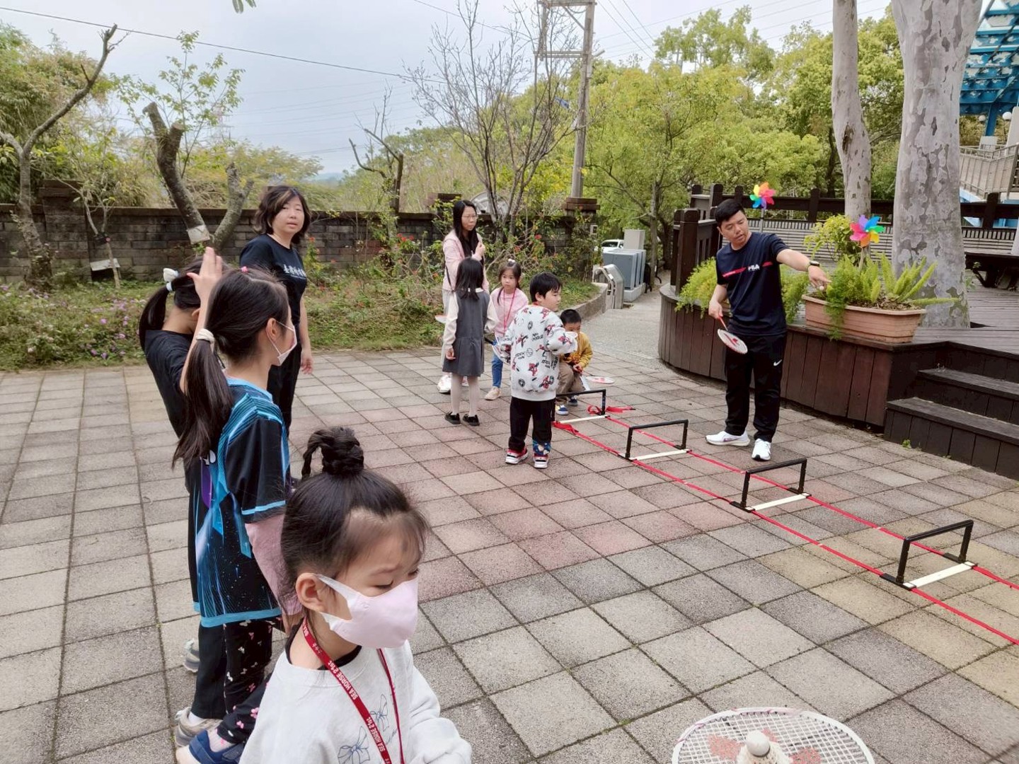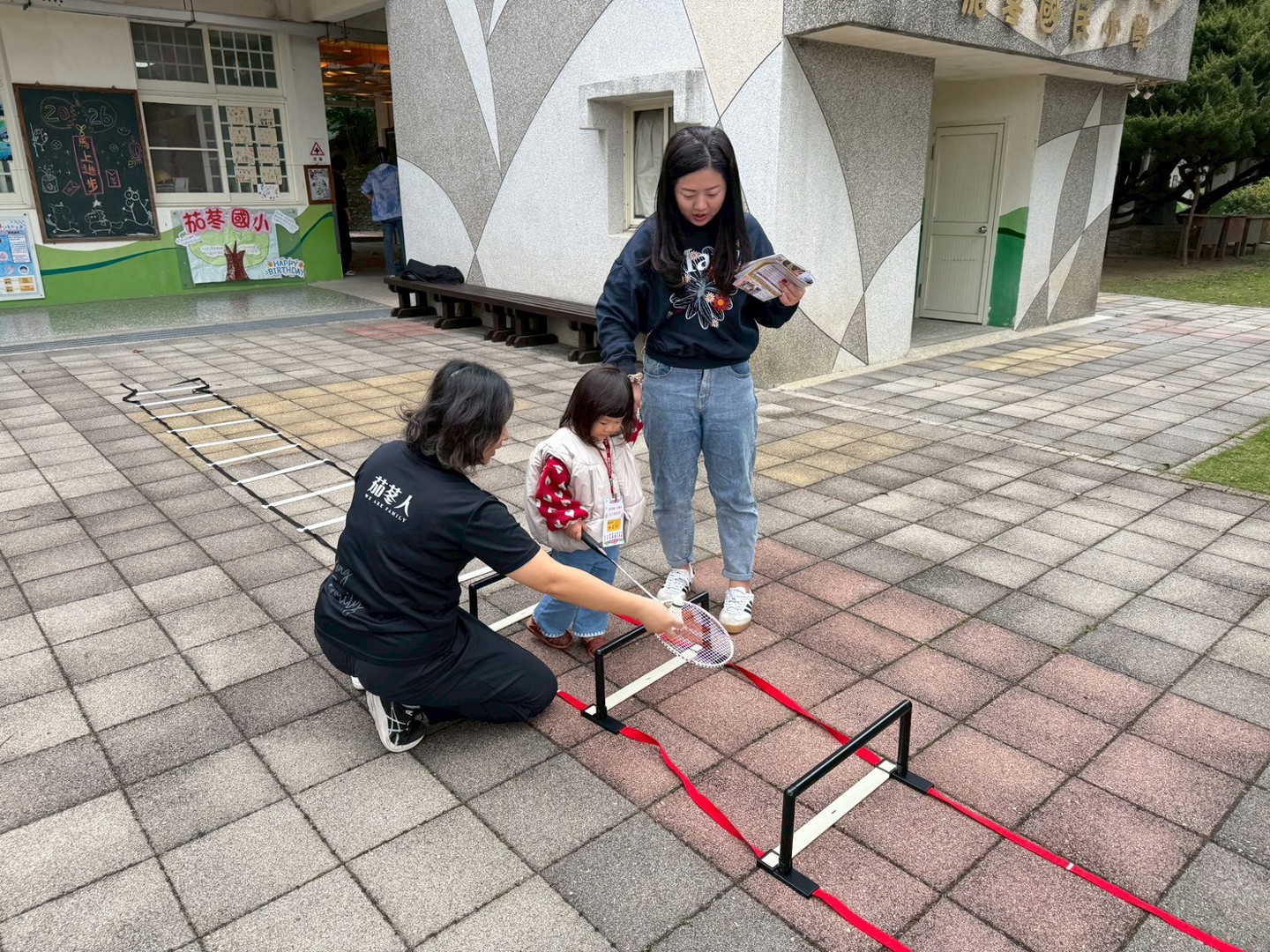 在「Dash機器人程式體驗」關卡中,孩子們雙眼發亮,在志工家長的引導下,初次嘗試用平板操控超萌機器人 Dash 解開任務,提前領略科技課程的趣味。緊接著在百卉台展開的「羽球體驗」--羽球平衡走繩梯,則考驗孩子的手眼協調與大肌肉發展。