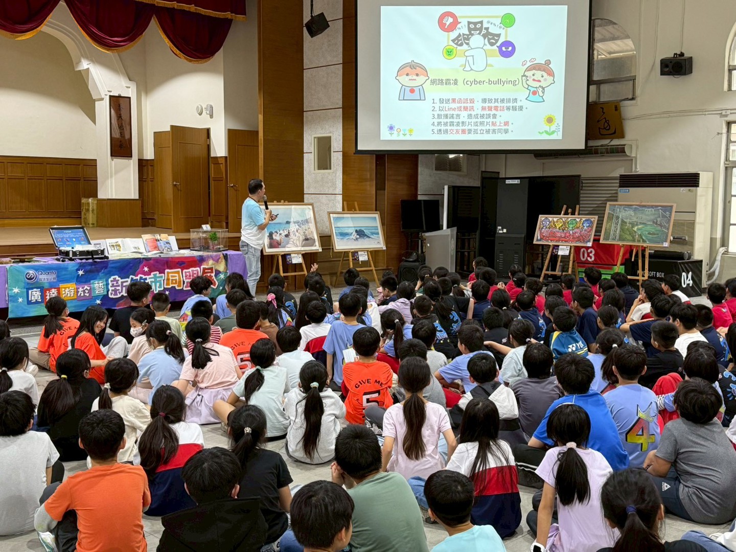 本校學務處於3月26日舉辦【校園觸法行為法治教育】宣導活動,邀請新竹地檢署官老師蒞臨學校進行專題演講。四年級師生熱烈參與,透過有獎徵答互動、實際案例分析、真實影片模擬情境解說等豐富內容,深化學生對網路散布不當影片等常見觸法行為的認知。