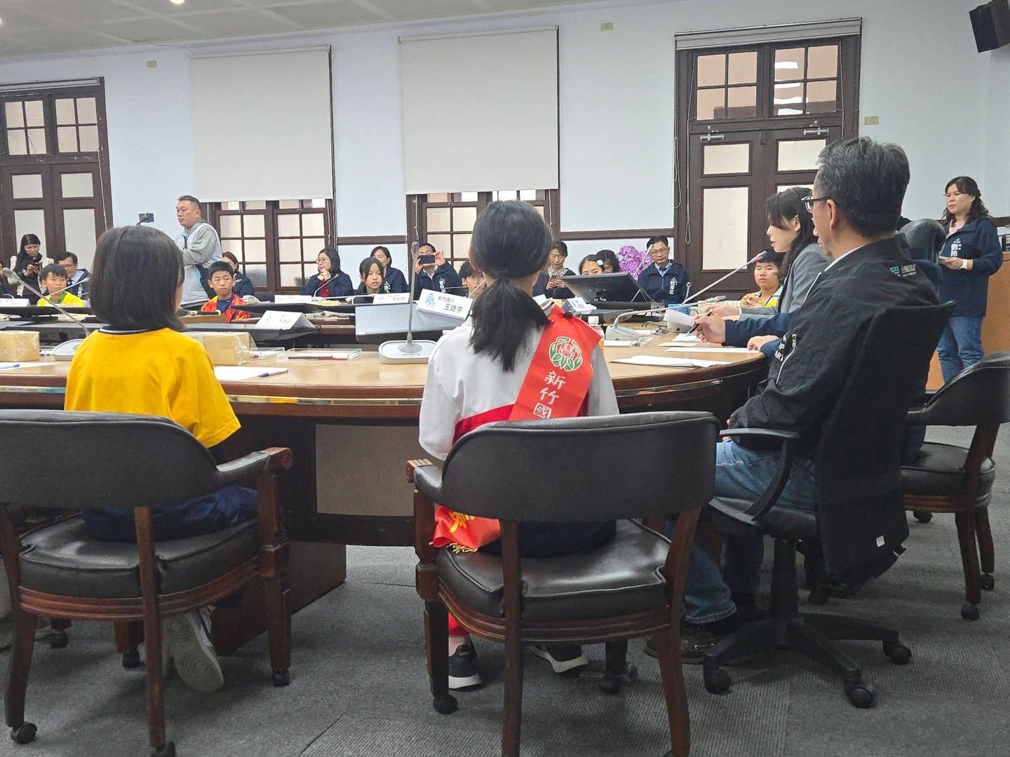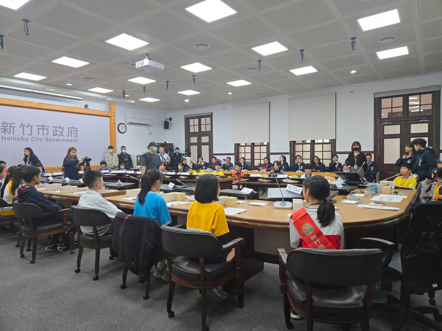 今午在市府第一會議室,高市長親自接見竹市32校小市長,透過民主程序傾聽兒童心聲,孩子們踴躍表達對兒童節活動的期待與想法,在交流與討論中學習公共參與,展現未來公民的責任與關懷。