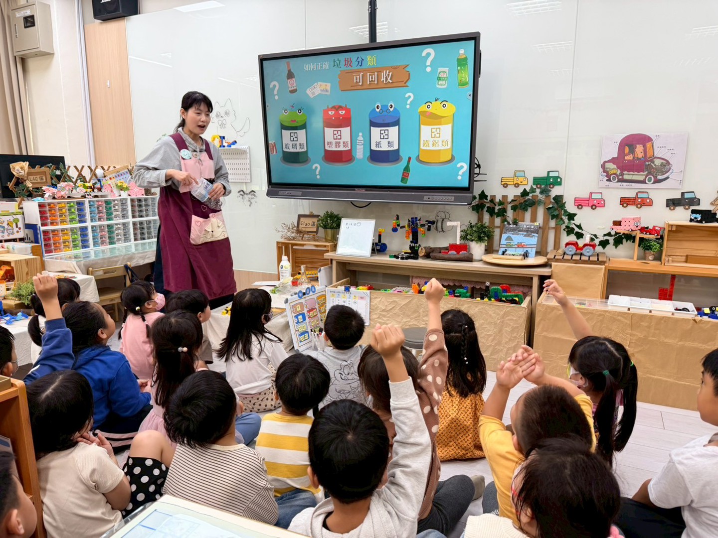 為了讓孩子從小建立對環境的關懷,並引導他們以生活化方式認識所處環境,活動首先播放生動有趣的環境教育短片。影片中清晰展示資源回收分類的方法與原則,不僅提升學習興致,更幫助孩童建立基礎環保概念。