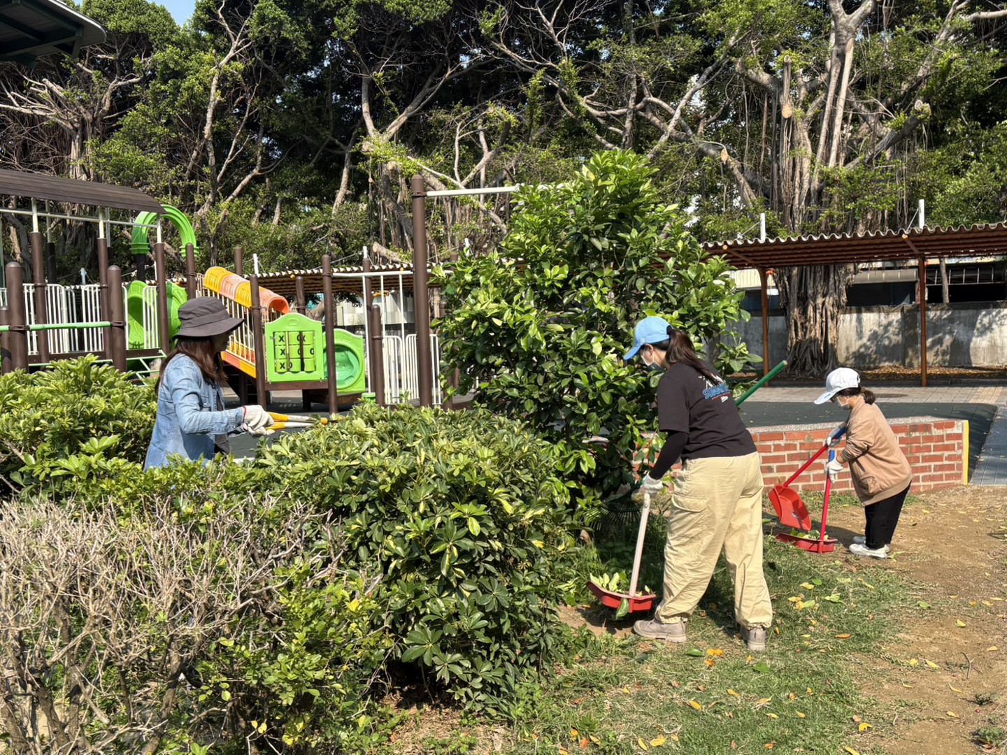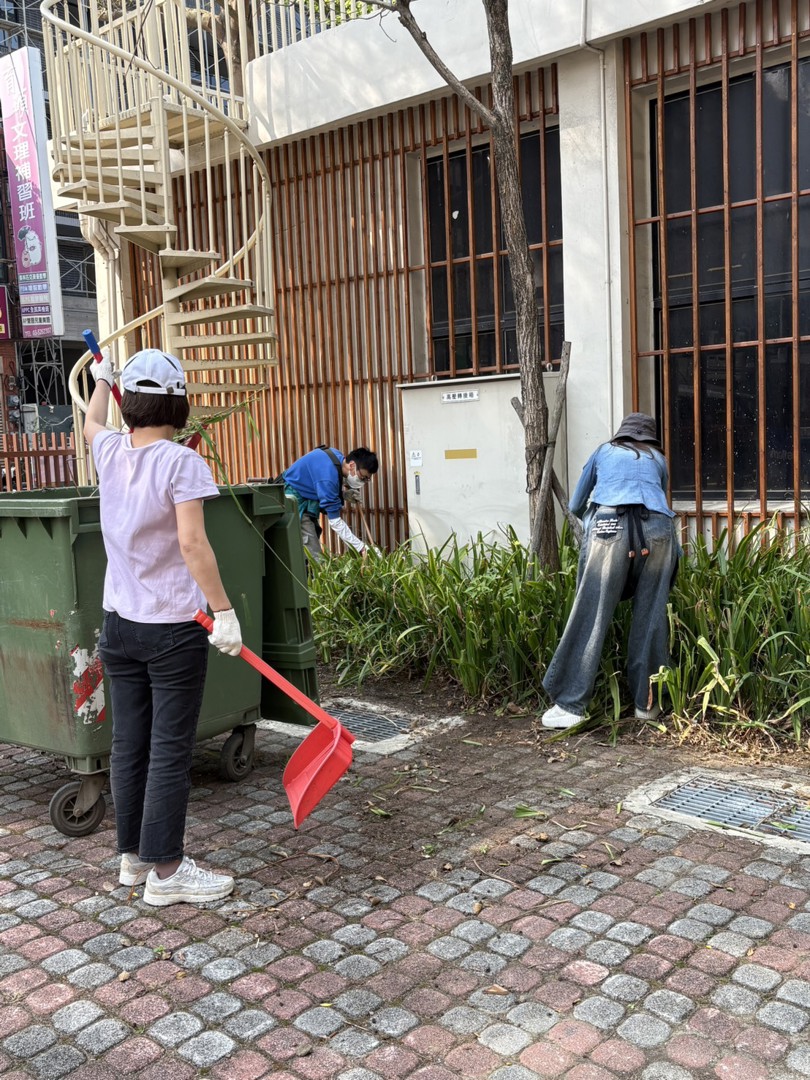 該區平時是學生們下課最喜歡的遊憩空間之一,為了給最可愛的民富學子們提供一個良好環境,大家無一不卯足全力在清理,經過漫漫冬季雜草長長了不少,雖然草少但冬天的草根會扎得很深,要使出一番力氣才拔得起來呢!
